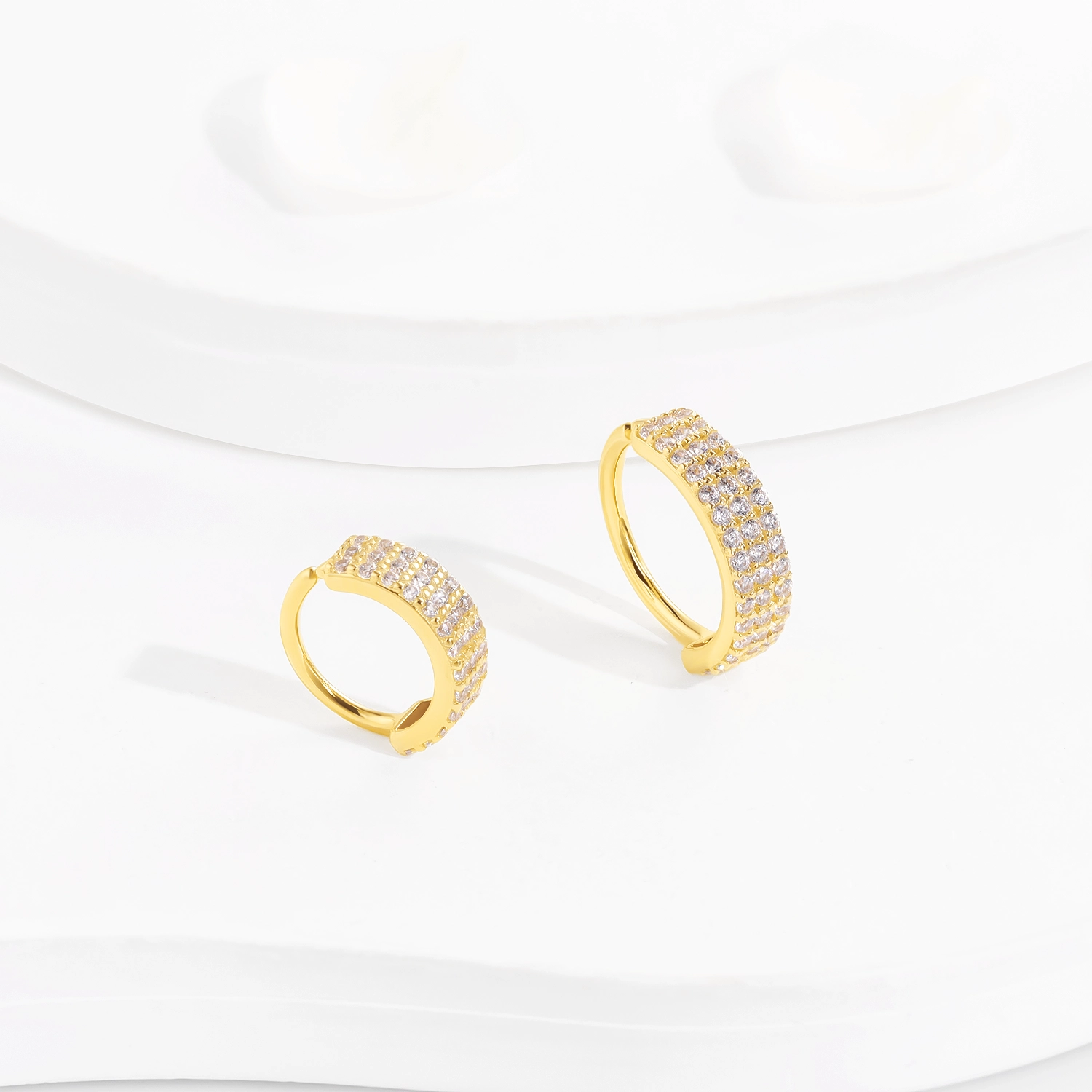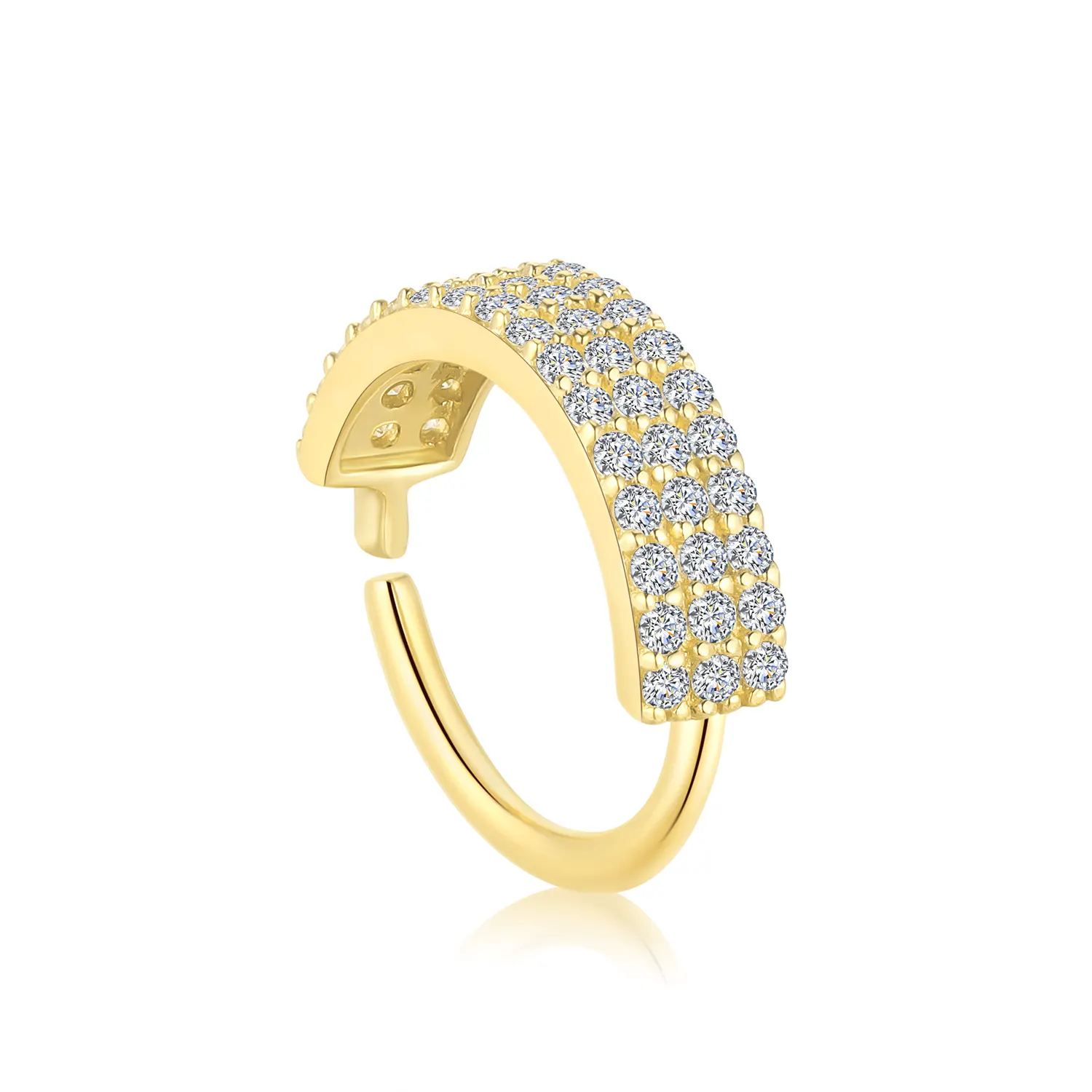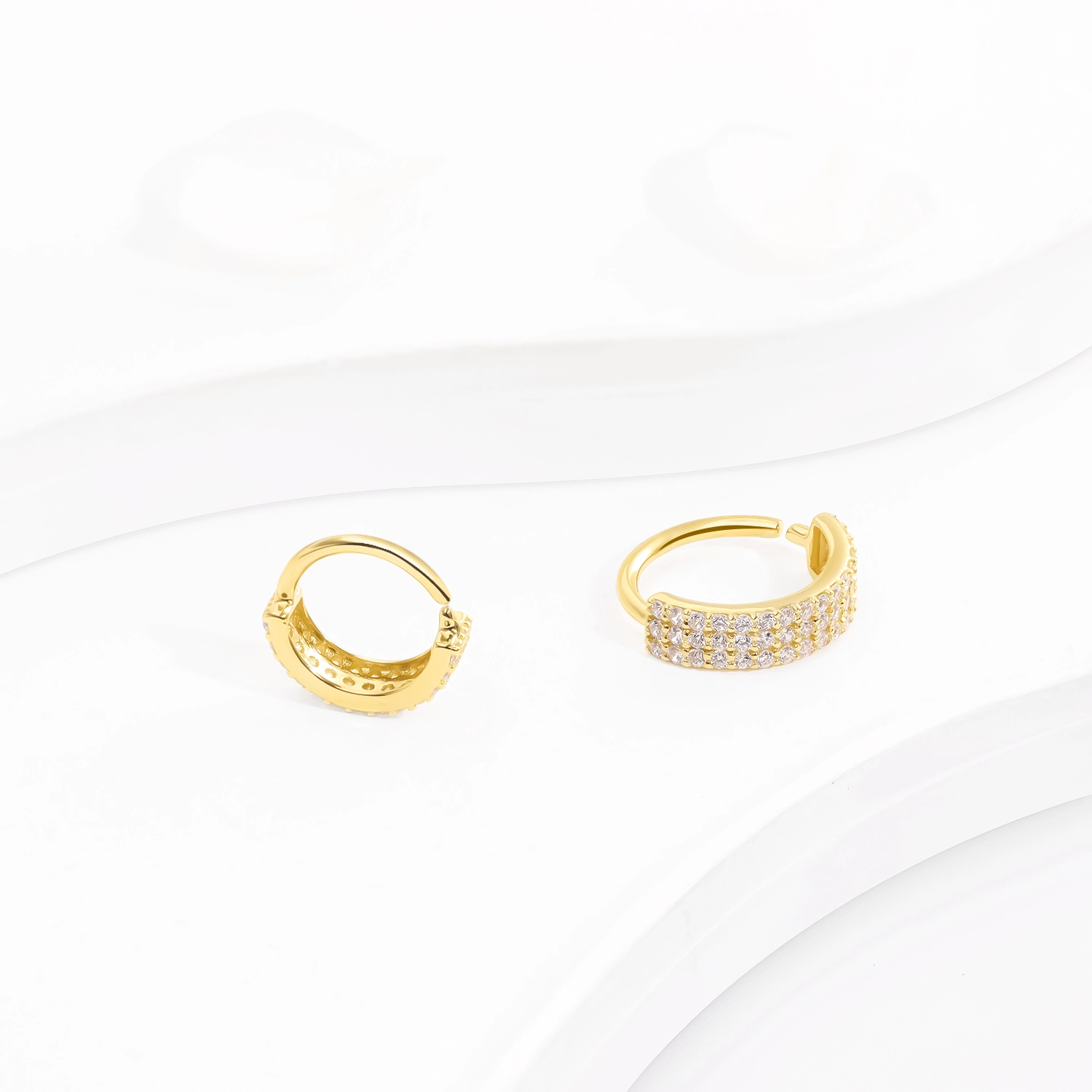 Introducing GY24G, a 14K solid gold seamless ring featuring triple rows of sparkling CZ stones. This elegant piece combines luxury and sophistication, perfect for adding a touch of brilliance to your body jewelry collection.