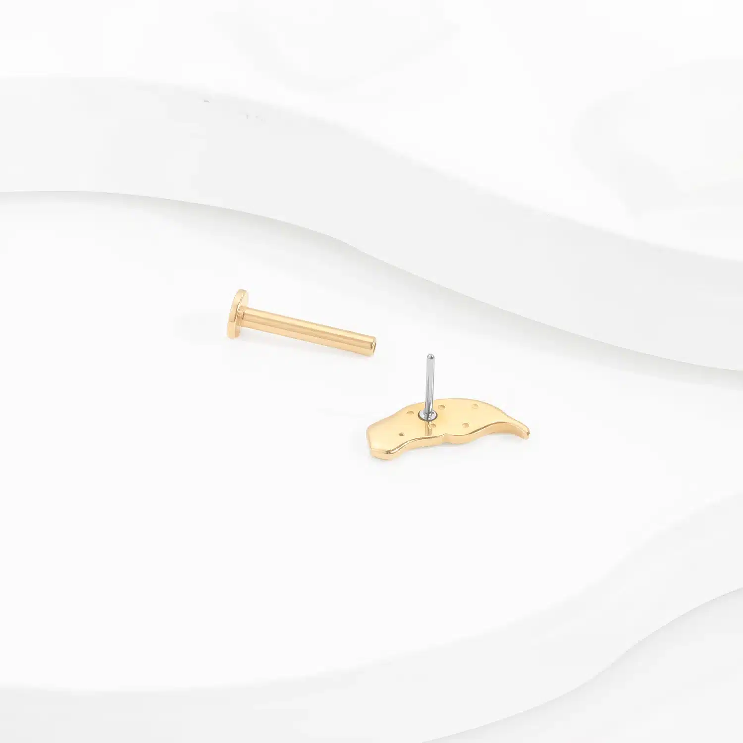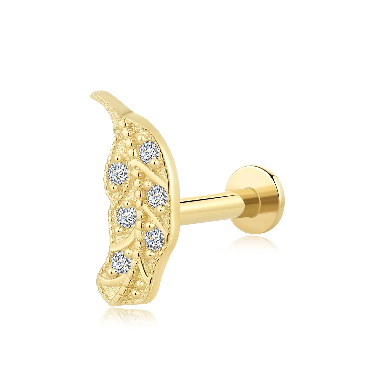 Sprout elegance with GUD50, a 14K gold labret stud inspired by the contours of a petaled bean, adorned with a glistening CZ stone.