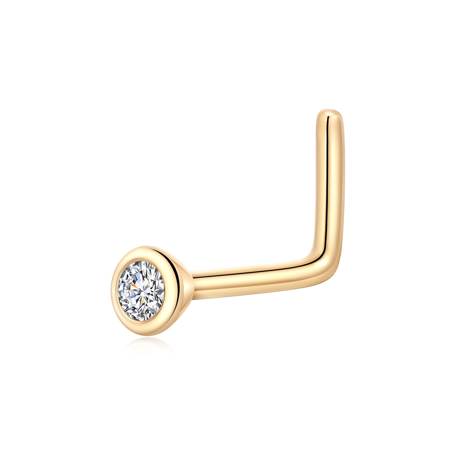 Enhance your allure with the KKV55G-20062 Nose Ring, featuring a radiant cubic zircon set in polished 14K gold for a touch of daily elegance.