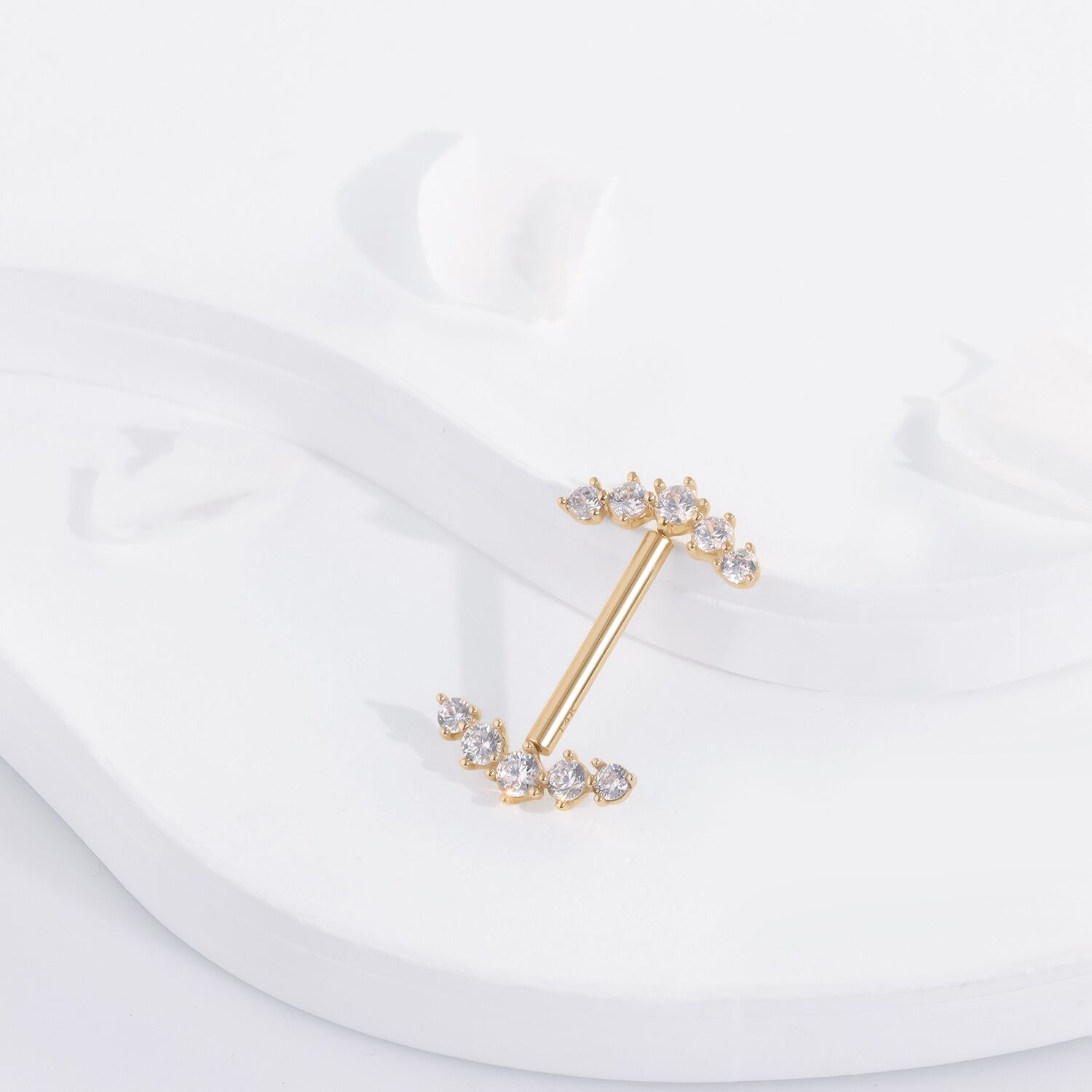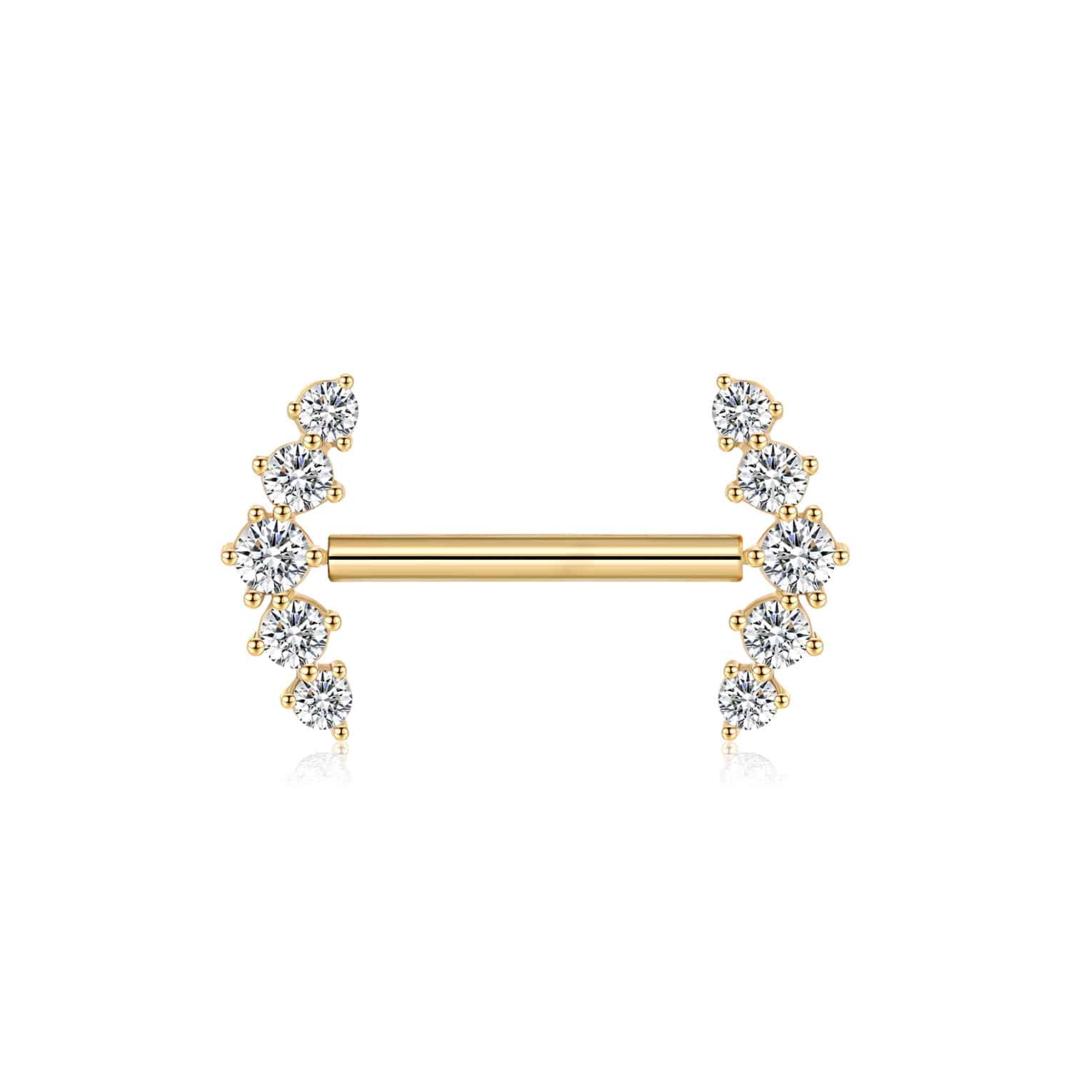 Dazzle with the KCS30404G-CL1414 Nipple Ring, a 14k gold design with sparkling zirconia, adding a luxurious touch to your collection.