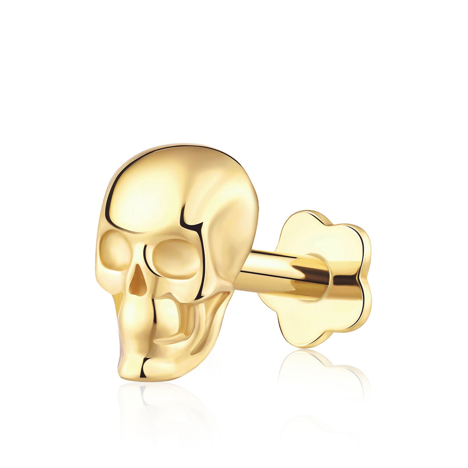 Dare to stand out with the KLF40G-1606 Internally Threaded Labret Ring, a bold 14K gold statement piece featuring a striking skull design for an edgy look.