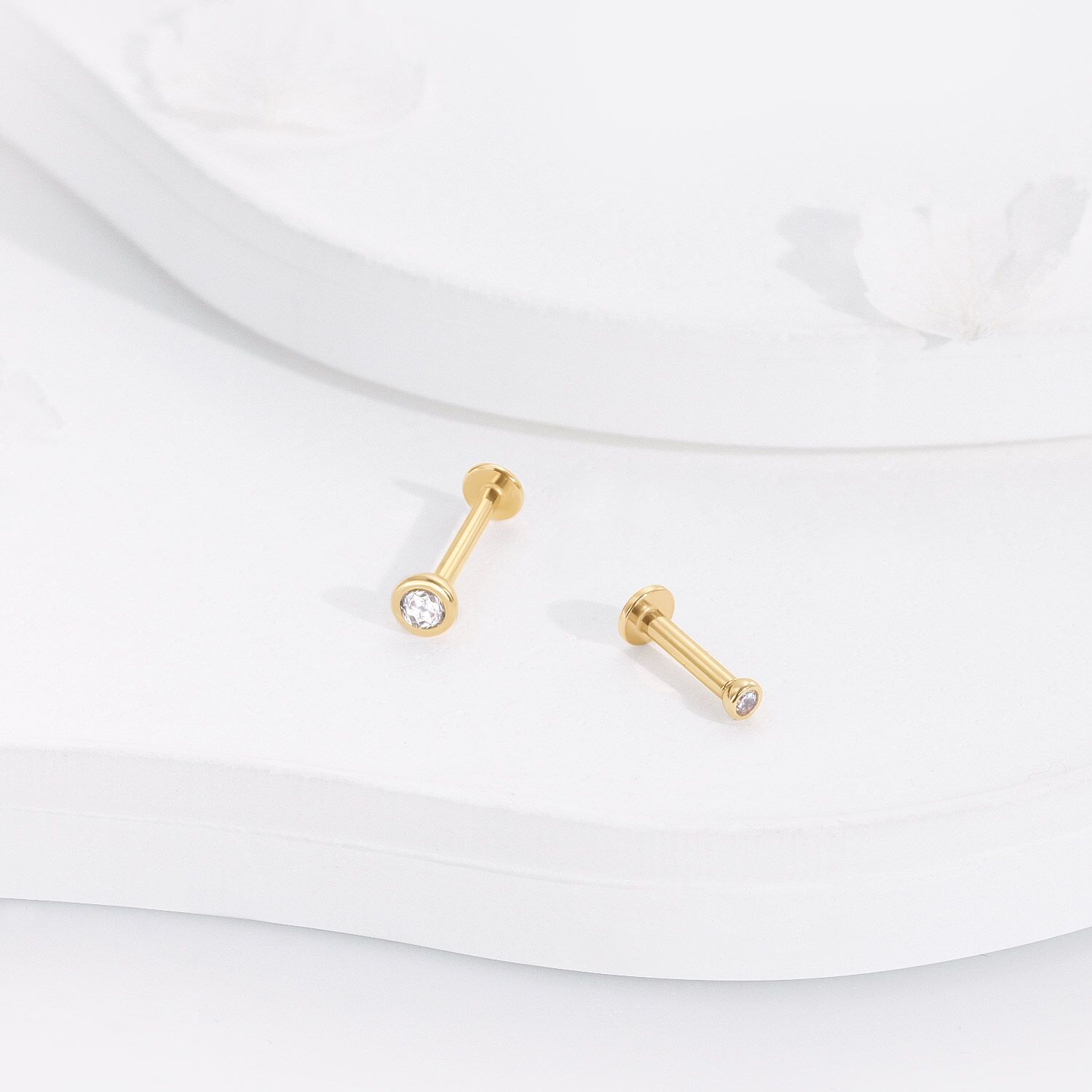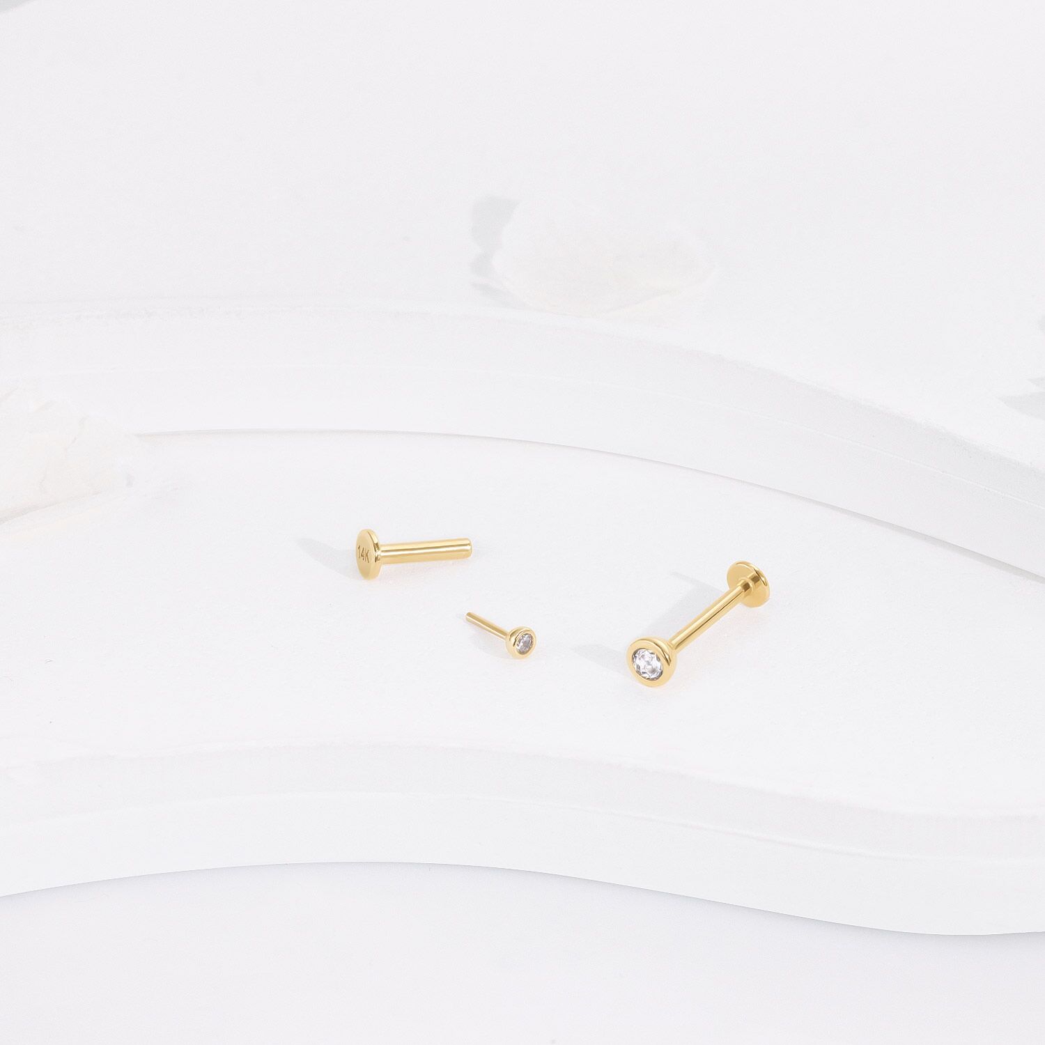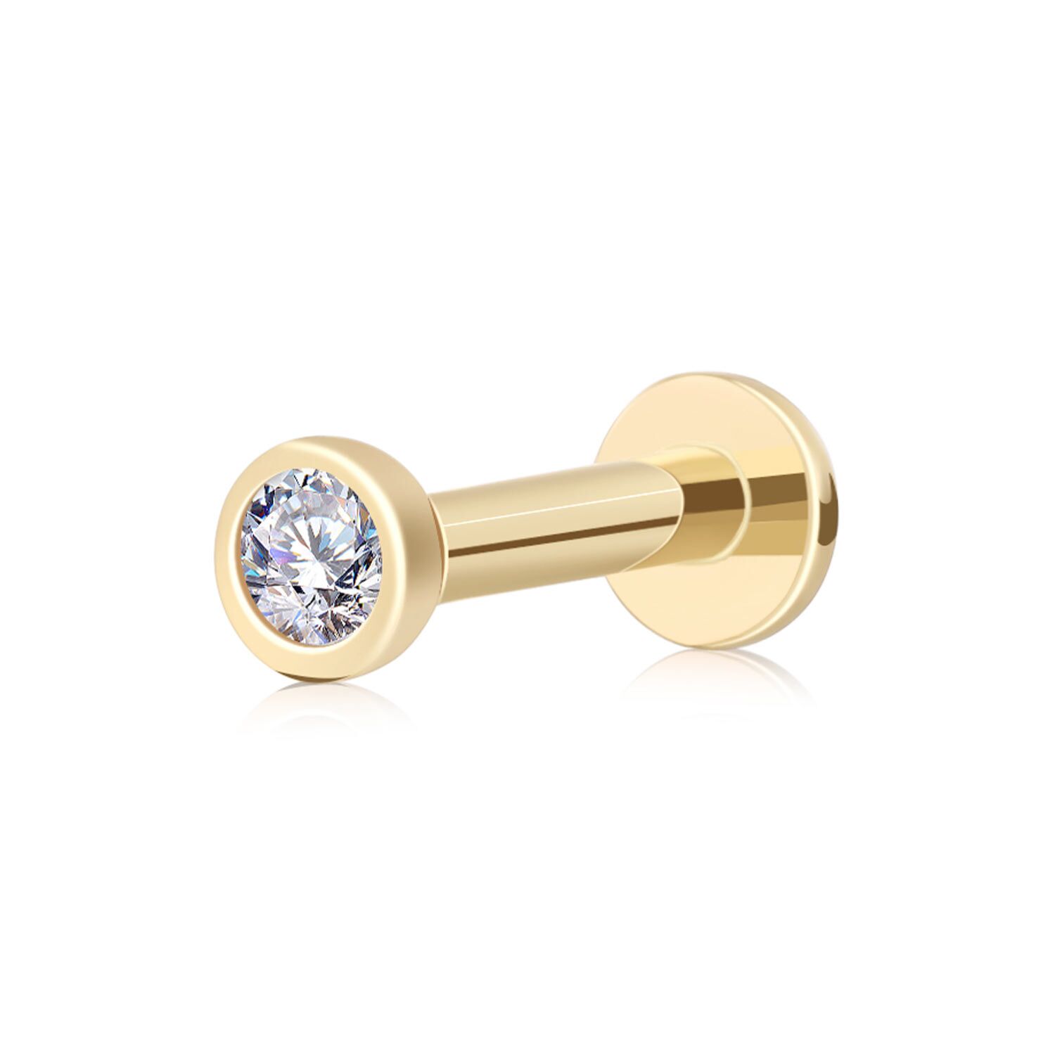 Discover the KLSV96 K-Labret stud: 14K yellow gold meets the brilliance of cubic zirconia. These threadless stud offer timeless elegance with a modern twist.