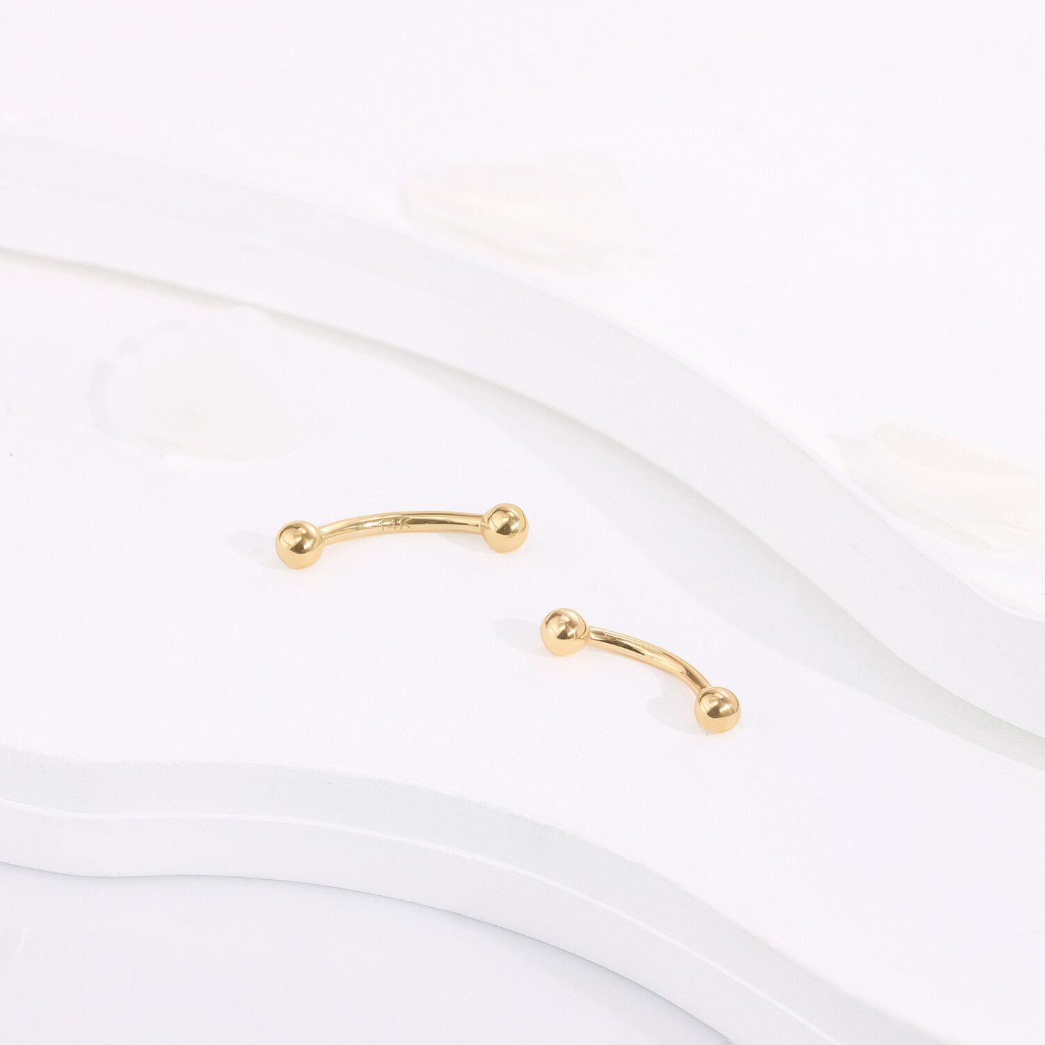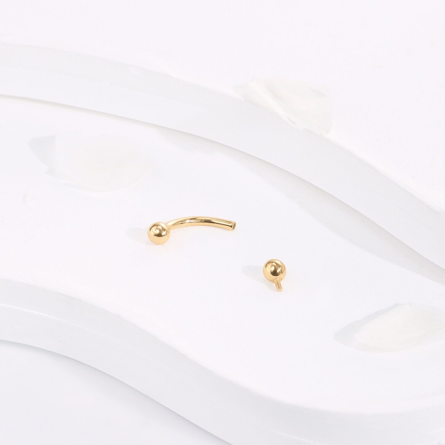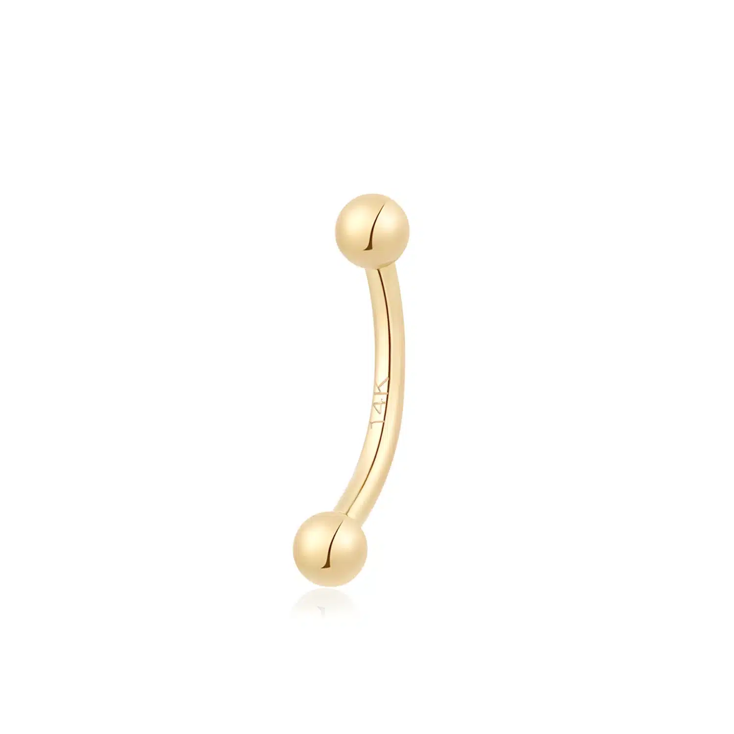 This KJ01G eyebow ring with two polished 14k gold balls and internally-threaded. It is perfectly polished and crafted.