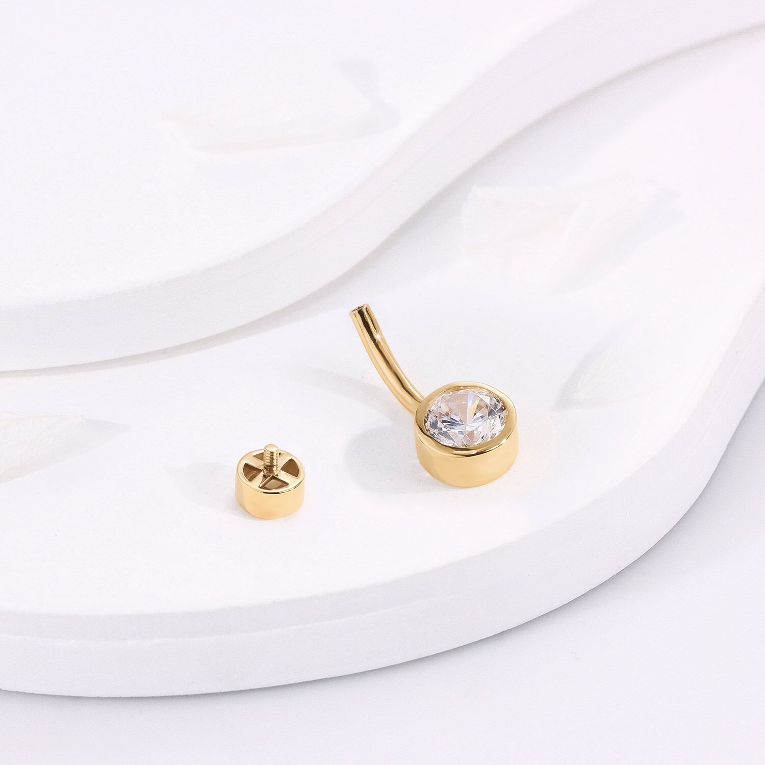 Sleek and modern, the GW28G is an internally threaded navel ring that exemplifies luxury with its 14K yellow gold composition and a brilliant cubic zircon centerpiece. Its minimalist design and timeless elegance make it a must-have piece of body jewelry for any fashion-forward individual.