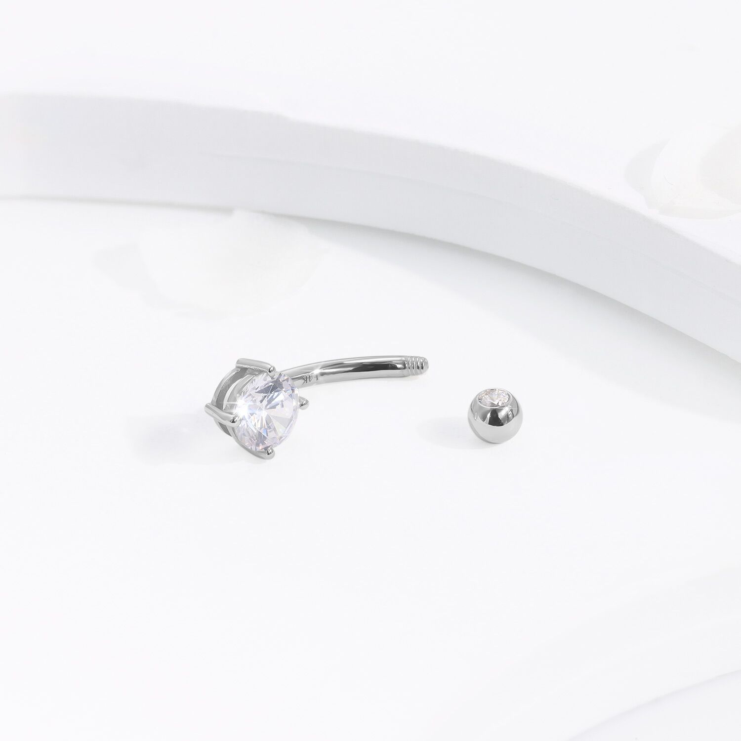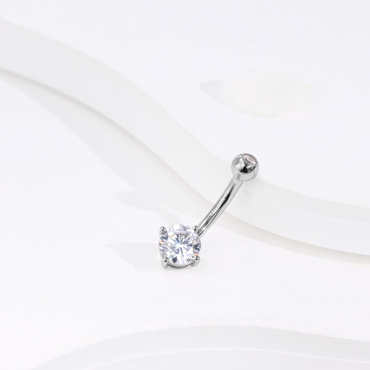 Elevate your navel jewelry with the KDE02W-1410 Ring, a sleek 14k white gold piece graced with a sparkling cubic zirconia for a touch of timeless elegance.