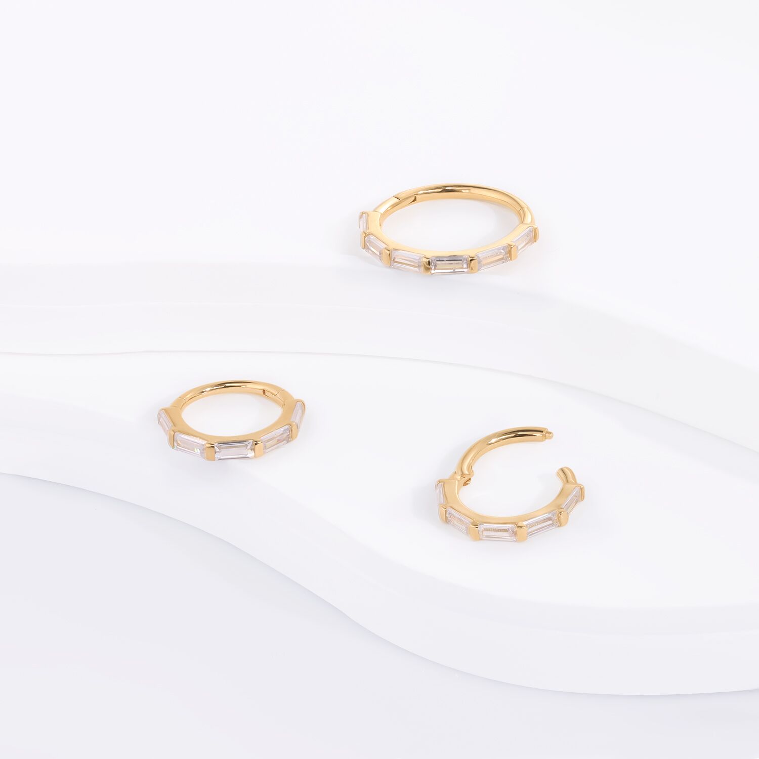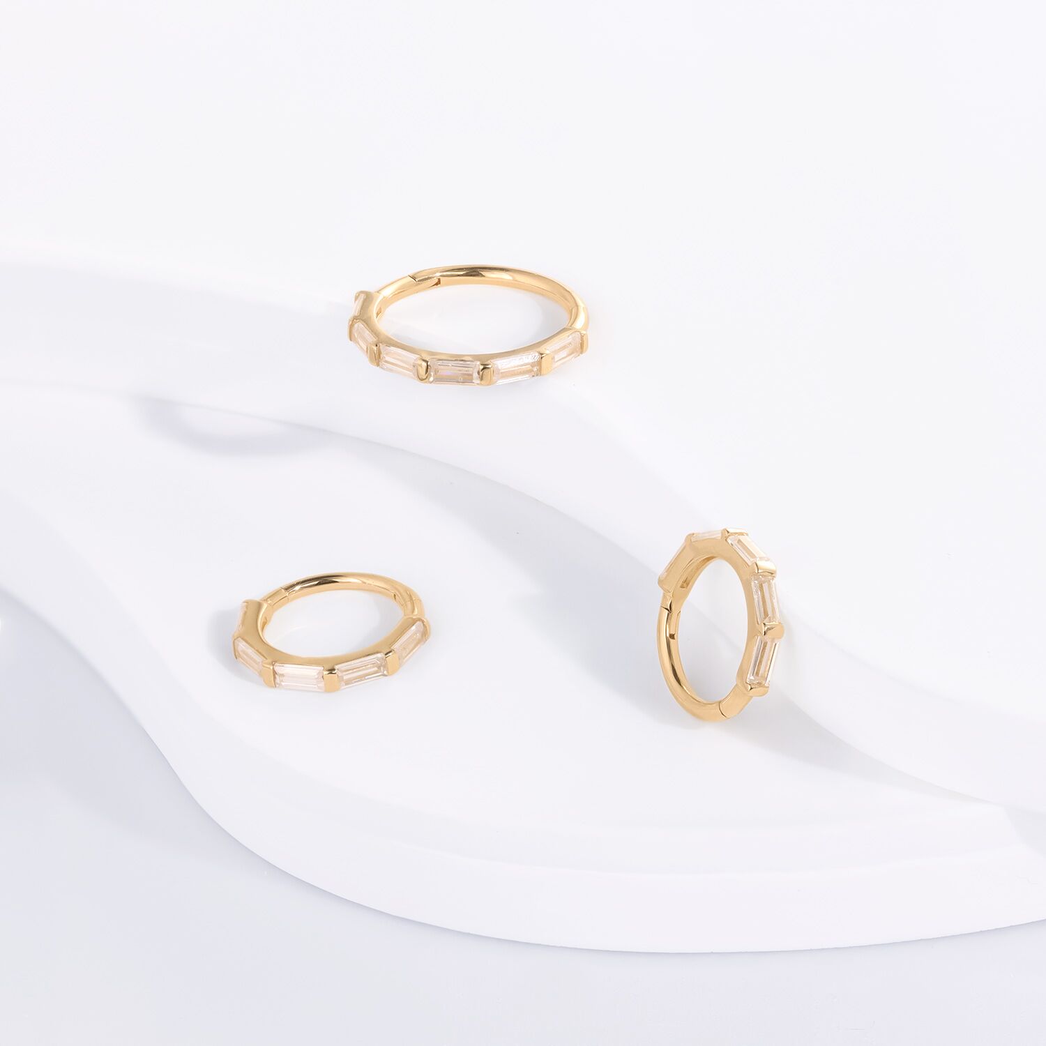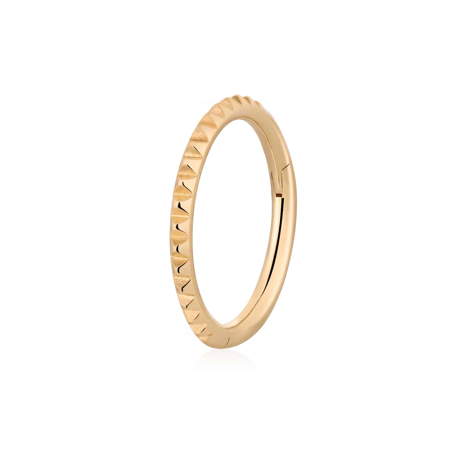 The KAV09G Hinged Segment Ring blends artful design with 14k solid gold, featuring a unique textured edge for a bold yet elegant statement.