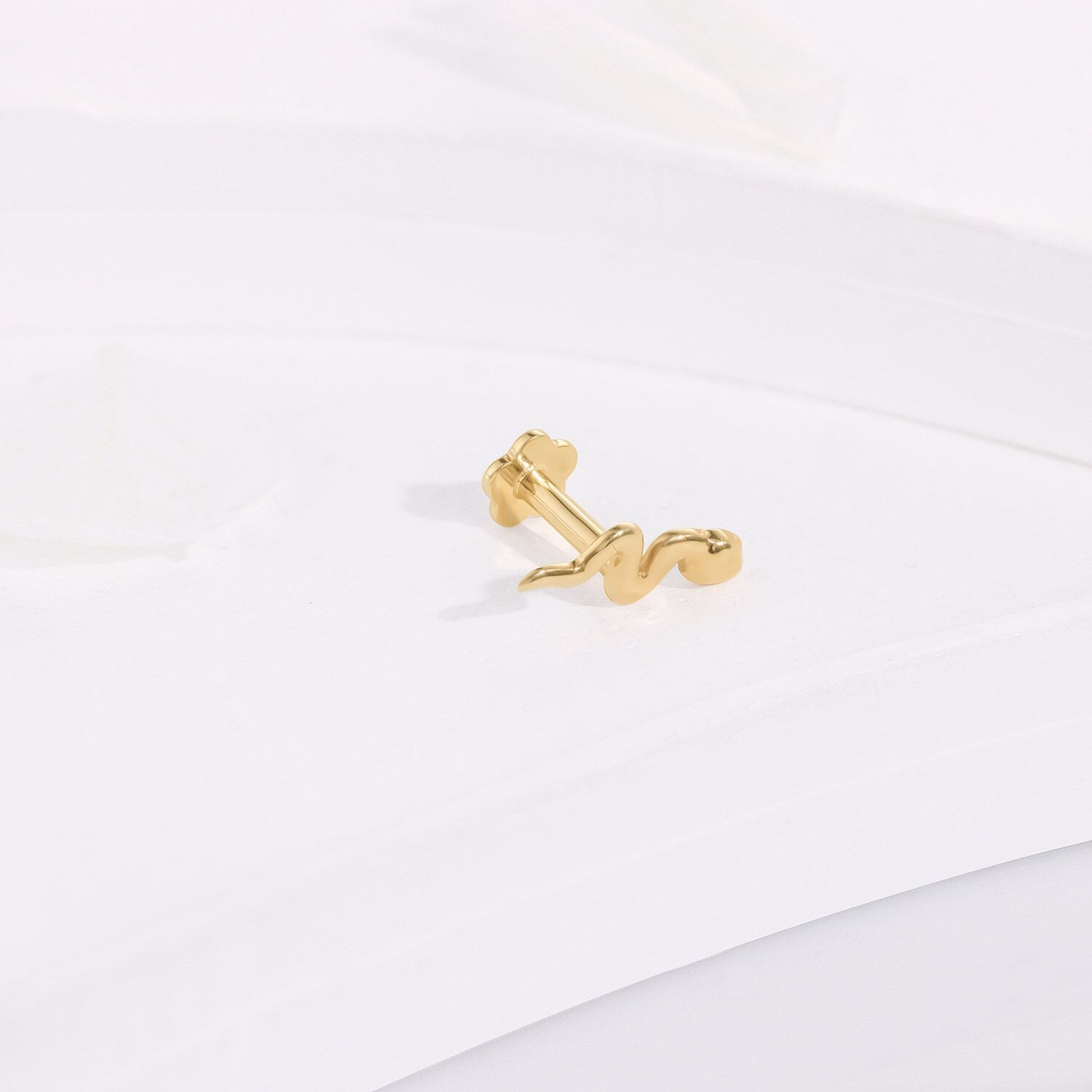 The KLF07G-1606 Labret Stud is a playful twist on a classic. Crafted in 14K yellow gold with an internally threaded design, this stud is both whimsical and elegant, making a distinctive statement in any piercing collection.