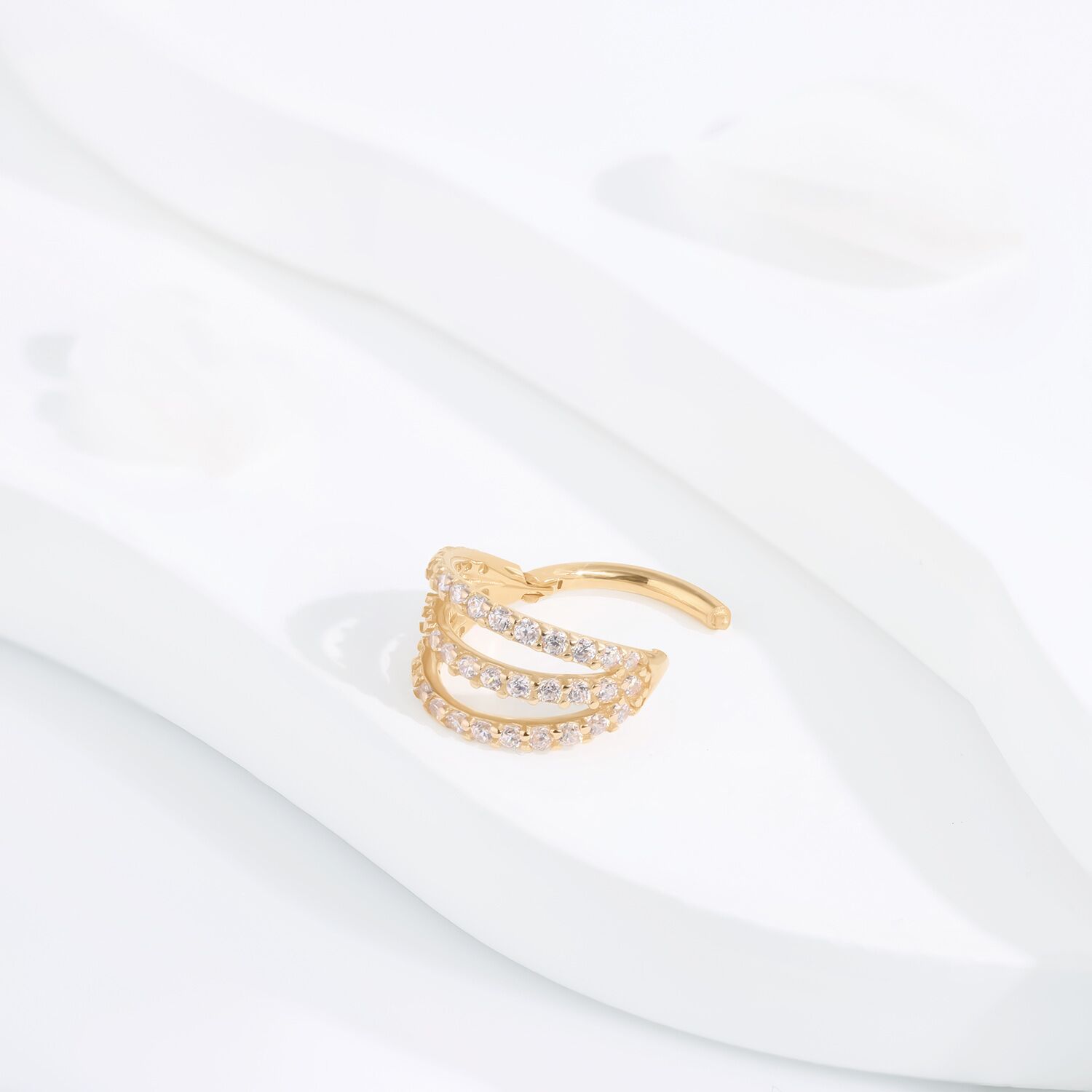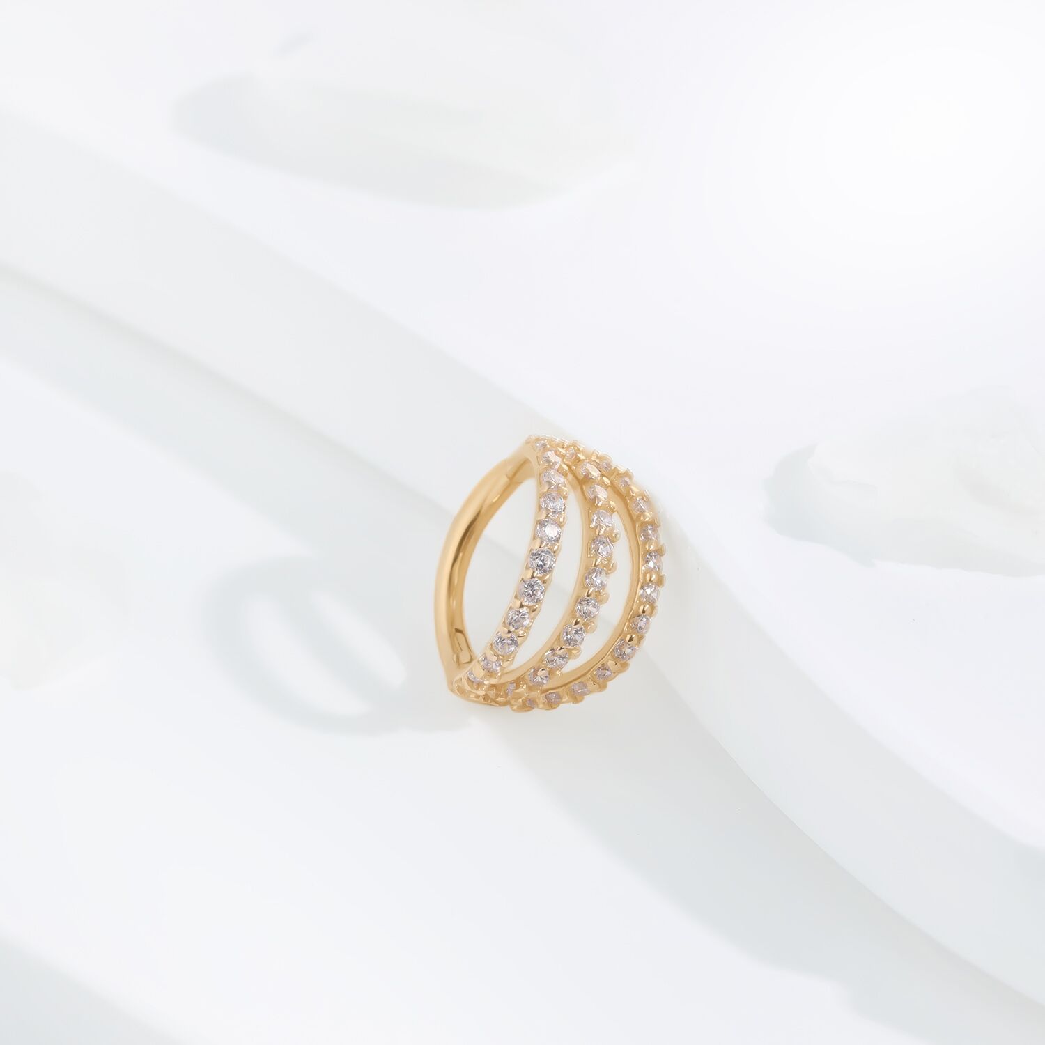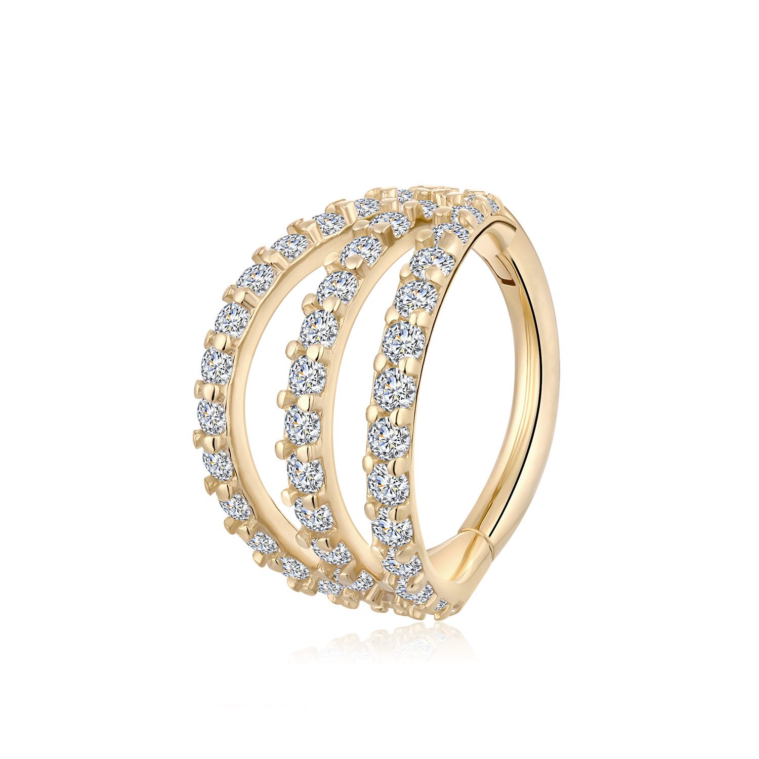 Unveil the allure of the KAV06G-1608 Hinged Segment Ring, a luxurious blend of 14k solid gold and cubic zircon. Its articulated design sparkles from every angle, offering a sophisticated highlight for any piercing.