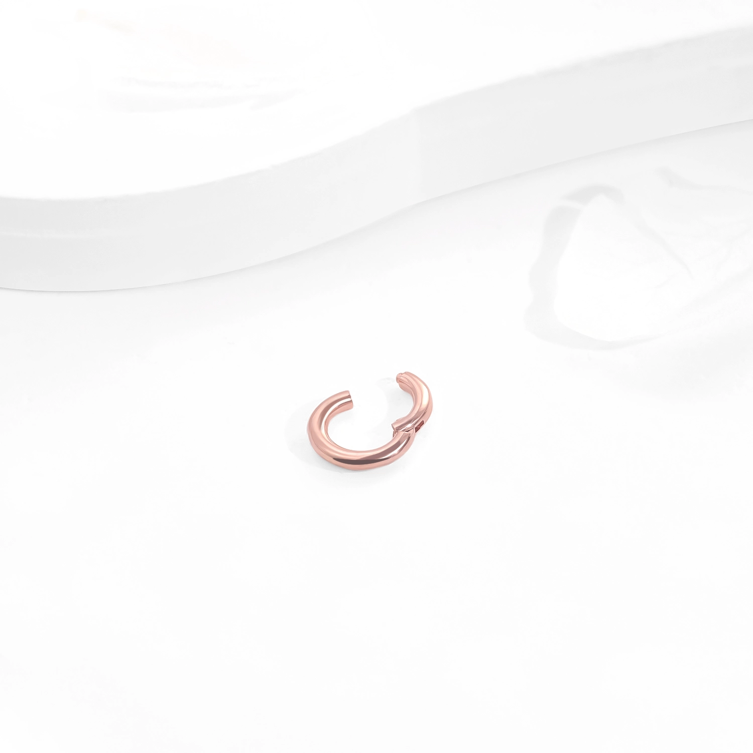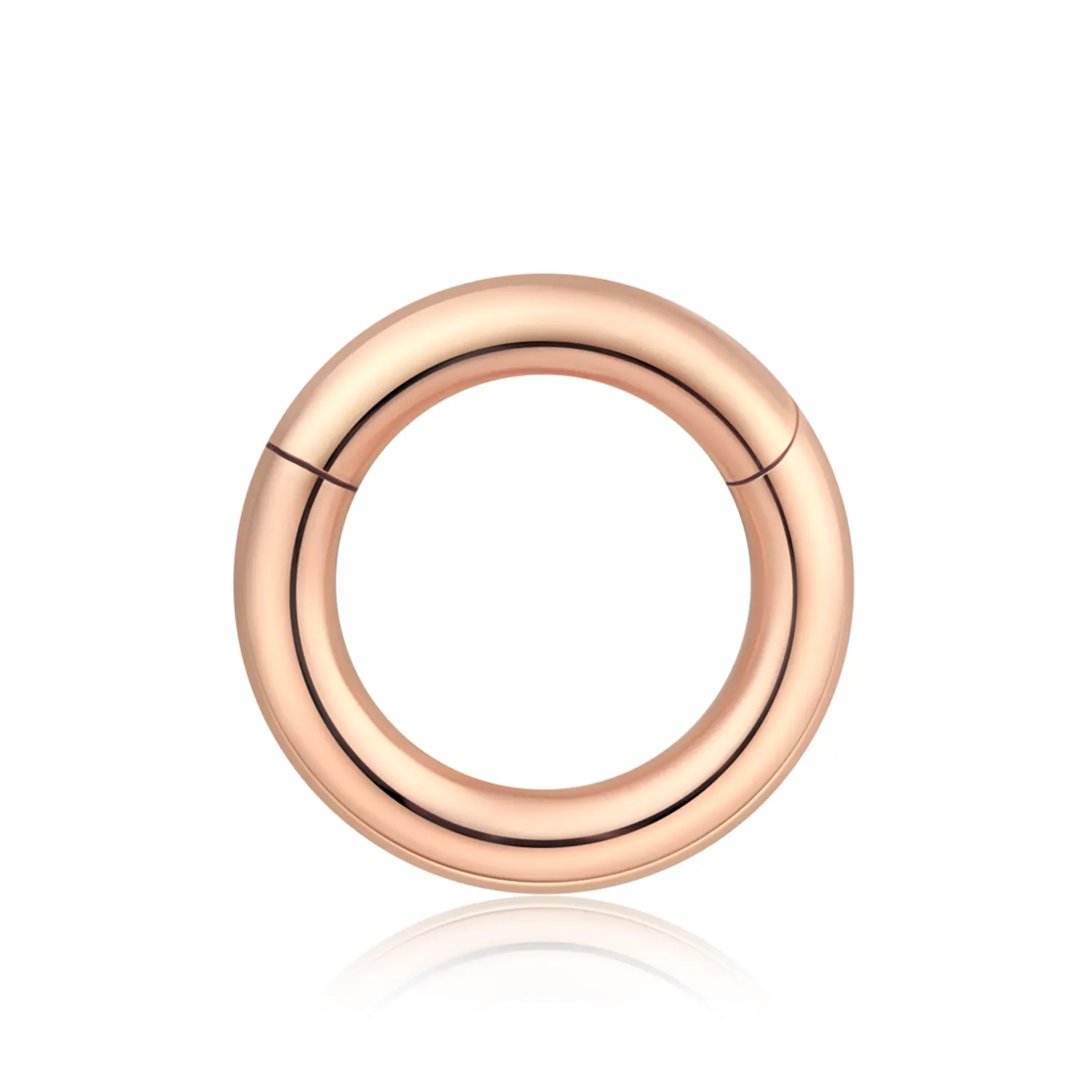 Introducing GZ02R: Elevate your piercing jewelry collection with this 14K rose gold hinged segment ring. This classic piece adds a touch of elegance and sophistication to your style, perfect for everyday wear.