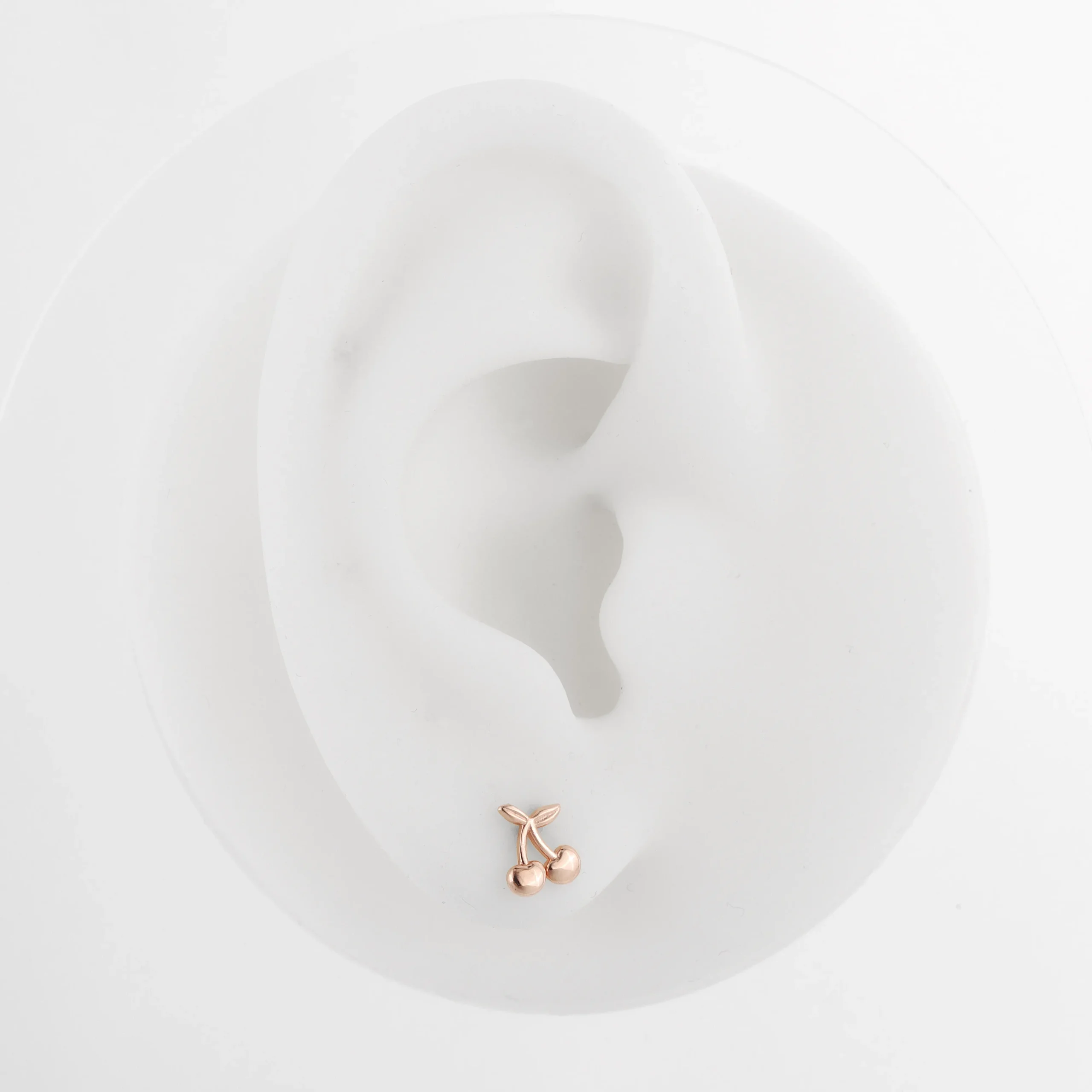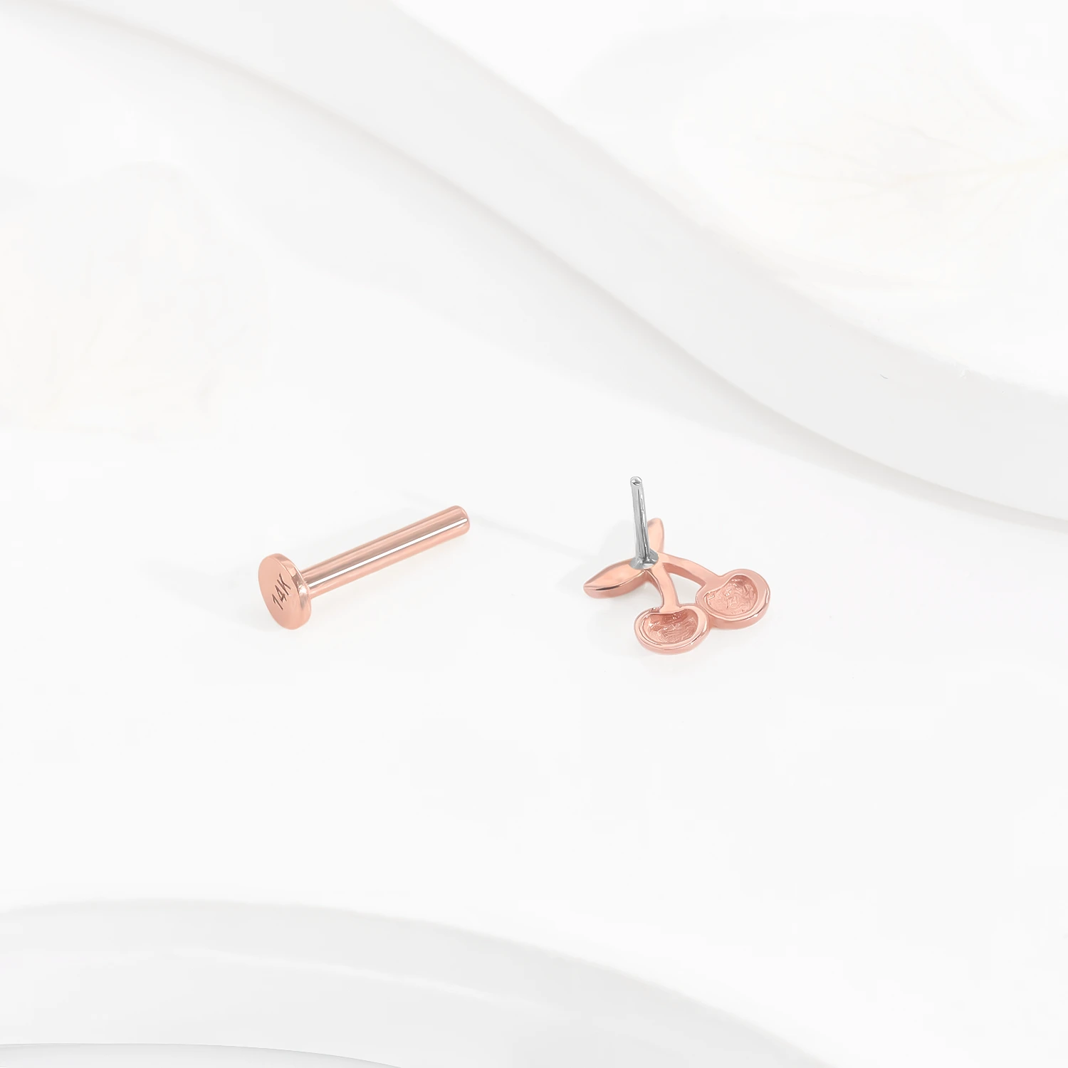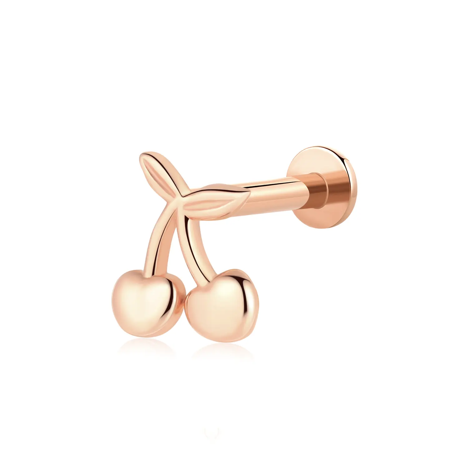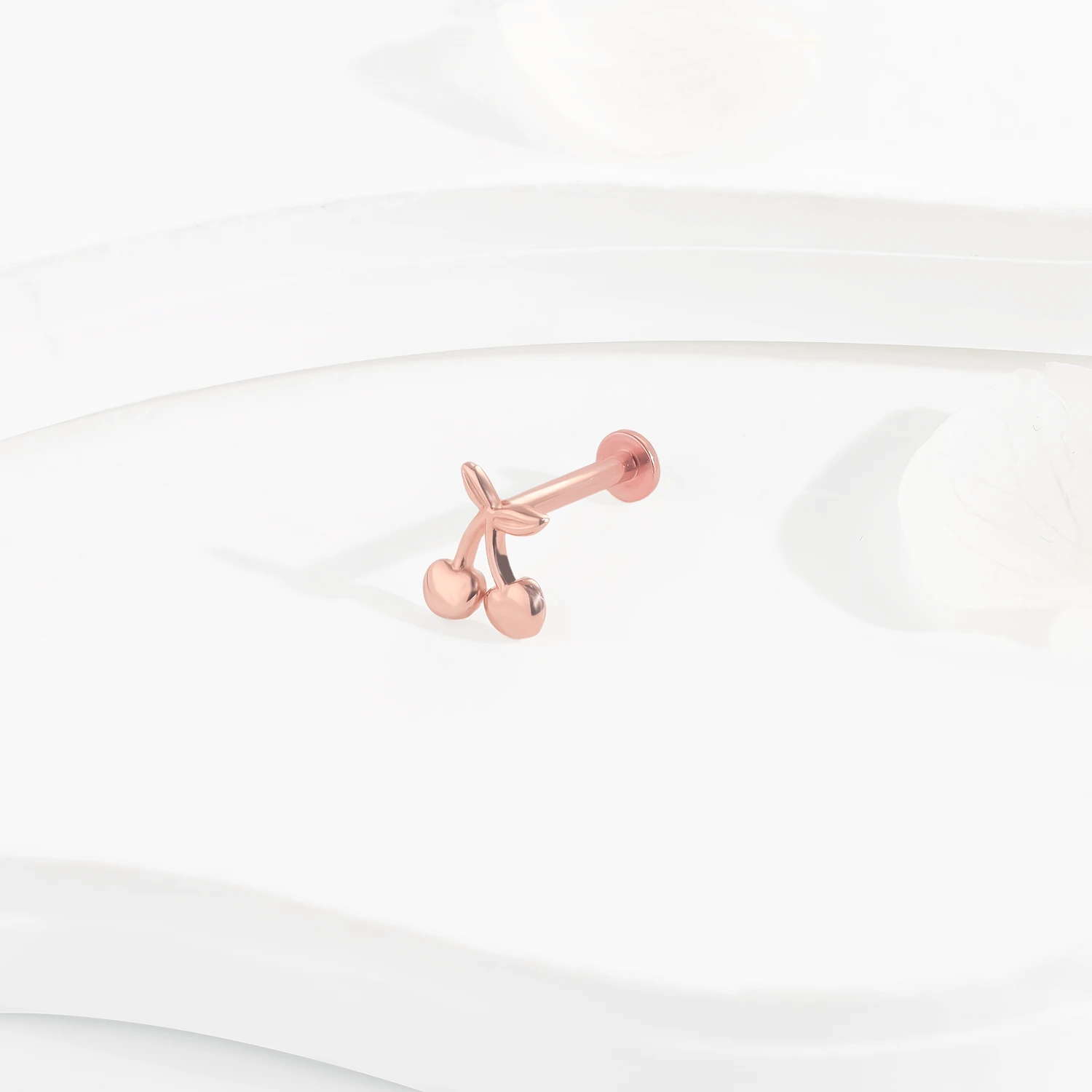 Introducing GUB948R, a playful 14K Rose Gold Threadless Labret Stud shaped like cherries, perfect for adding a whimsical touch to your jewelry ensemble. Pin:0.45*4.5mm