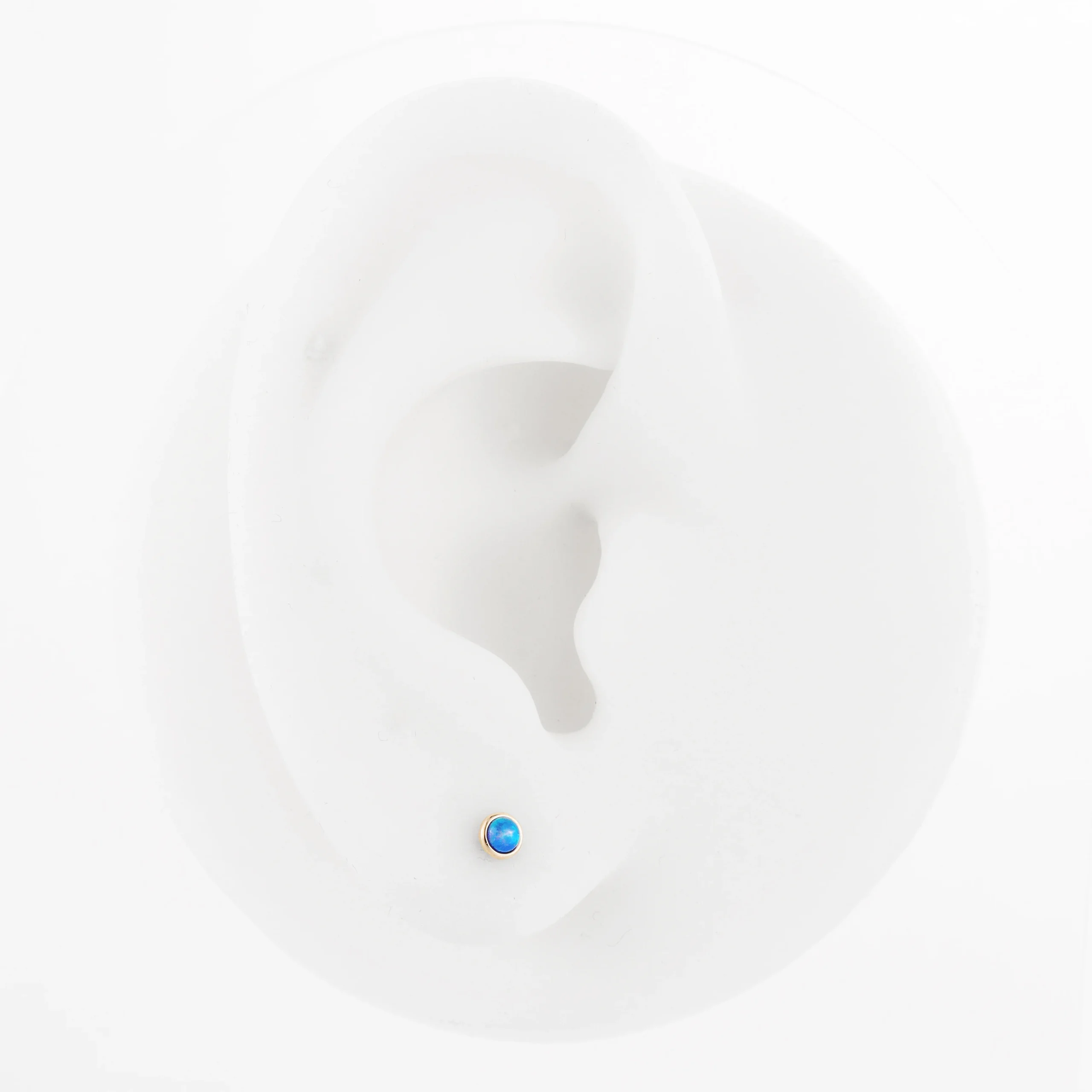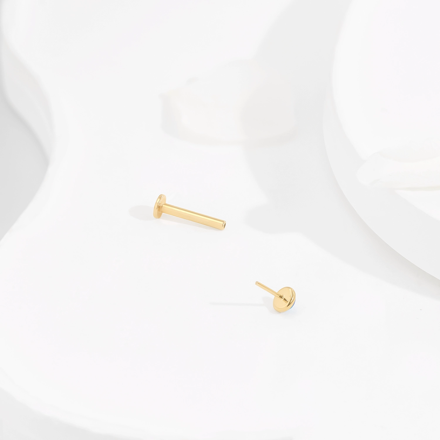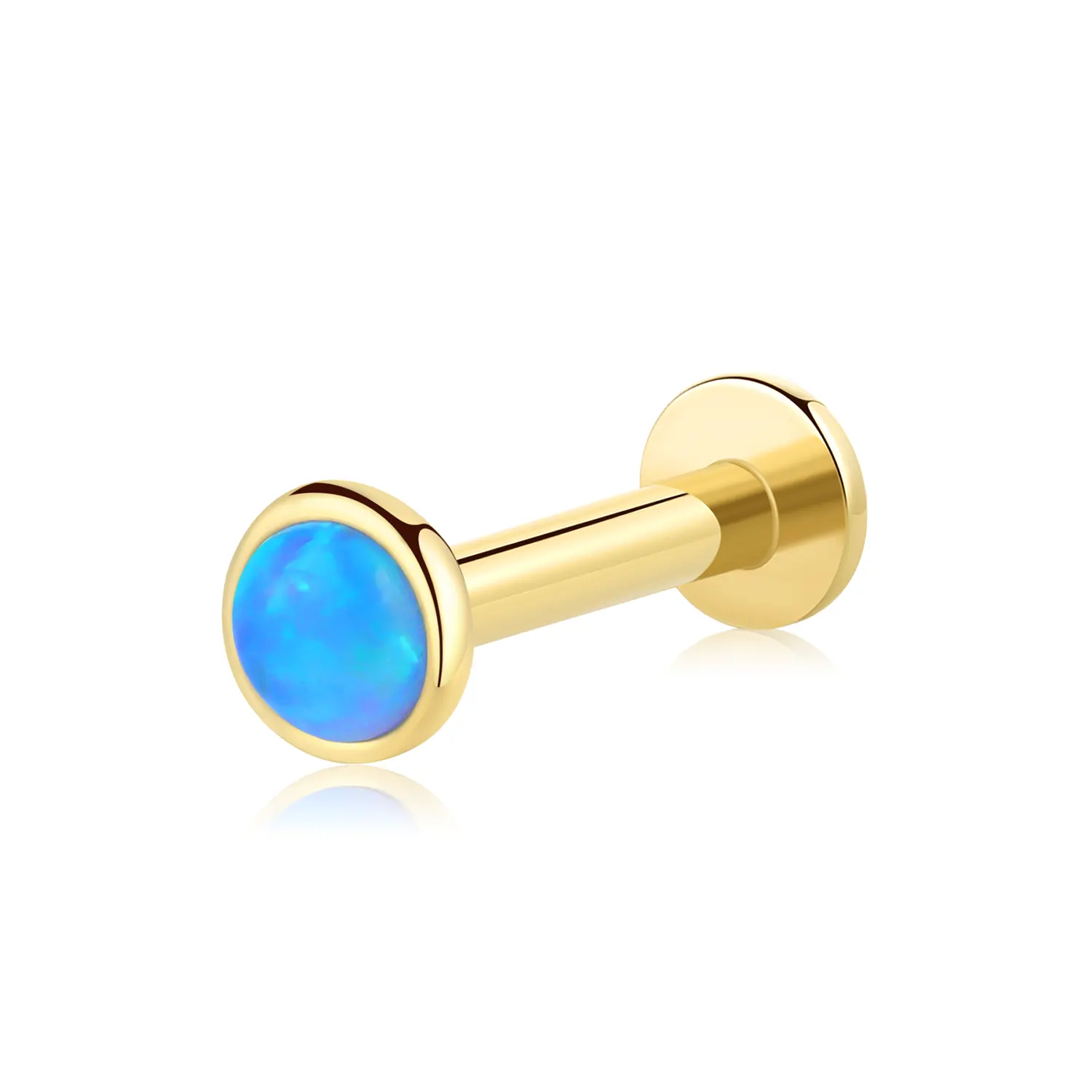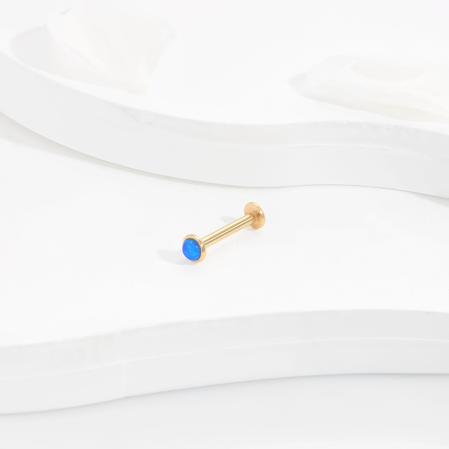 Elevate your style with the 14K Solid Gold Threadless Labret Stud, model GU28G, featuring a mesmerizing blue opal. A touch of oceanic enchantment. Gold Pin
