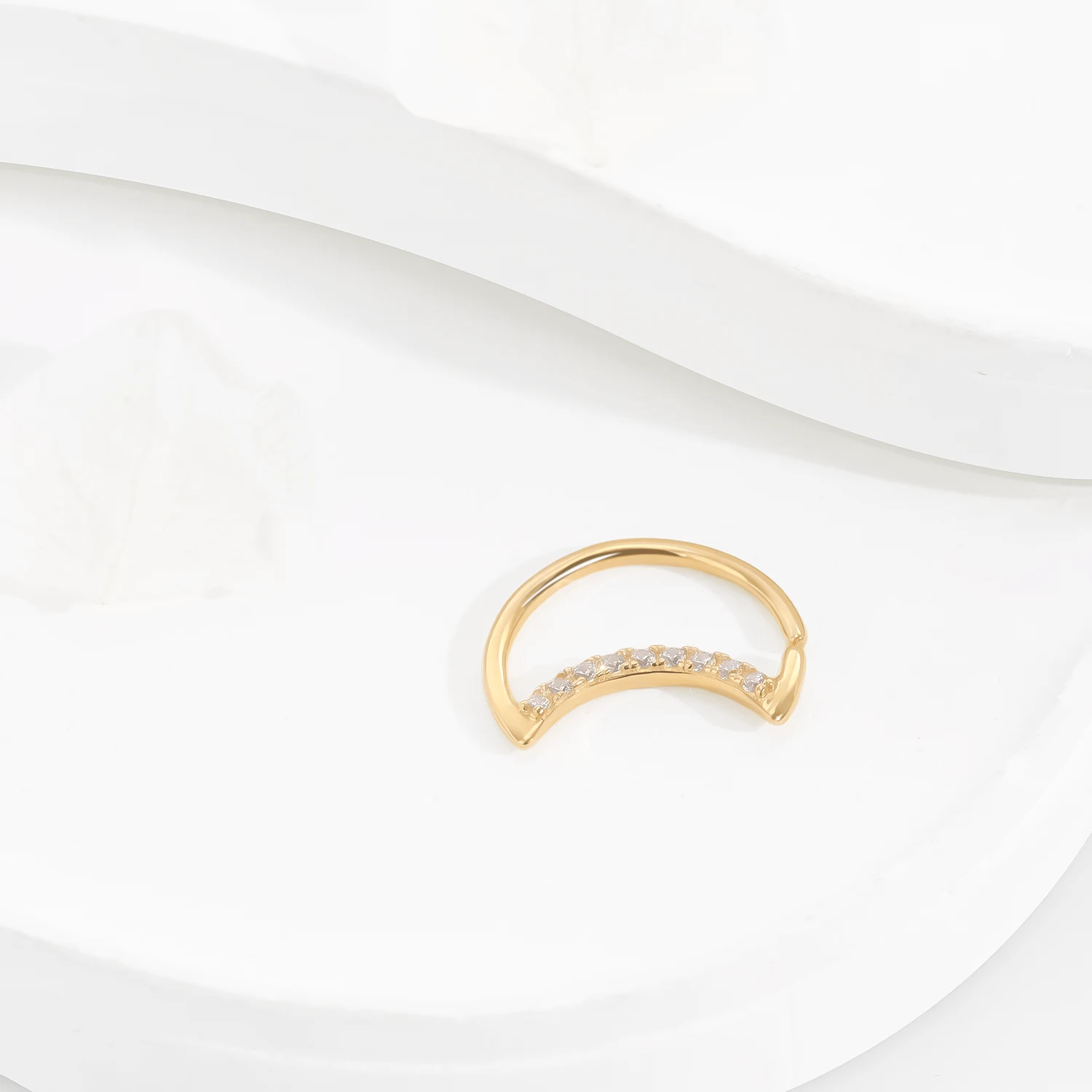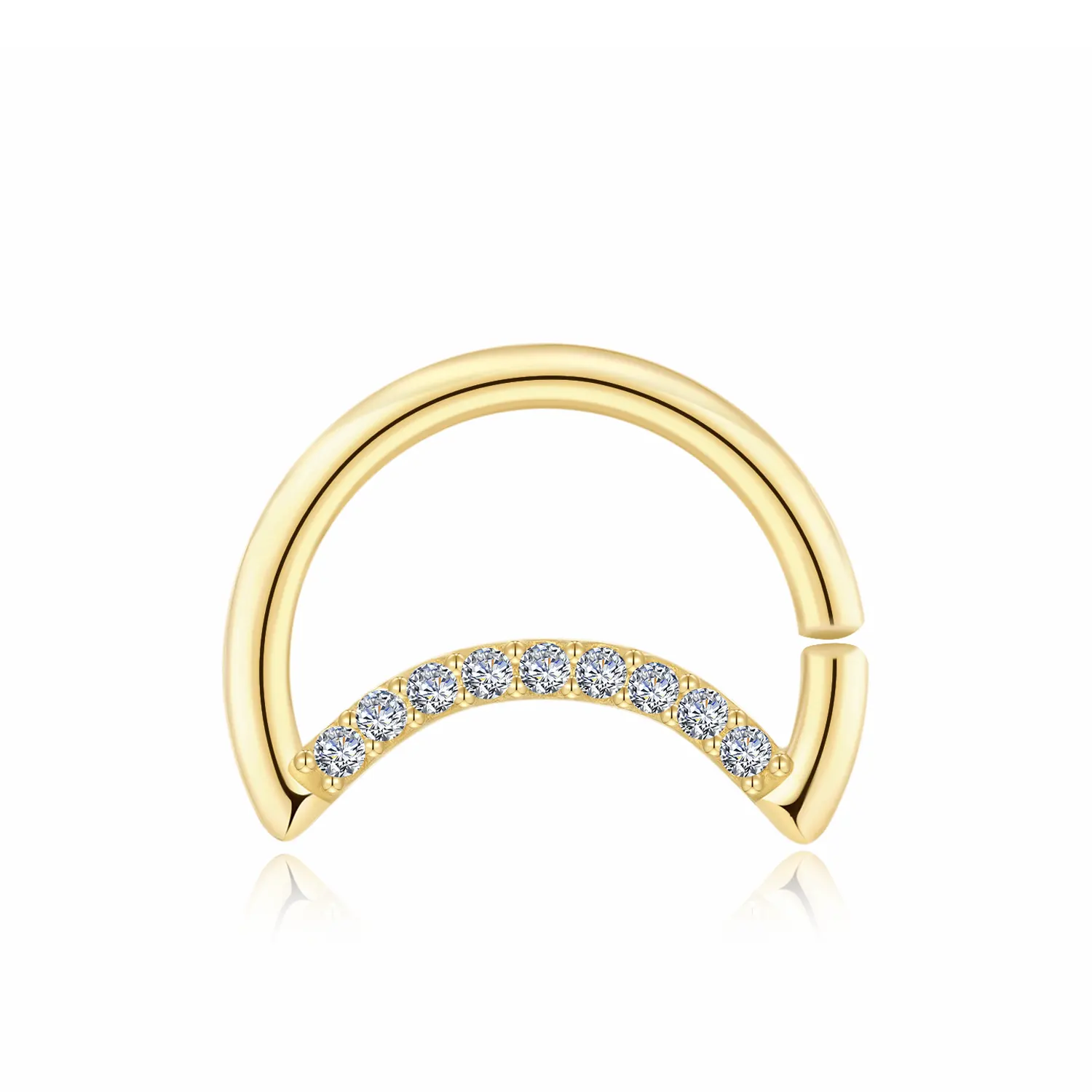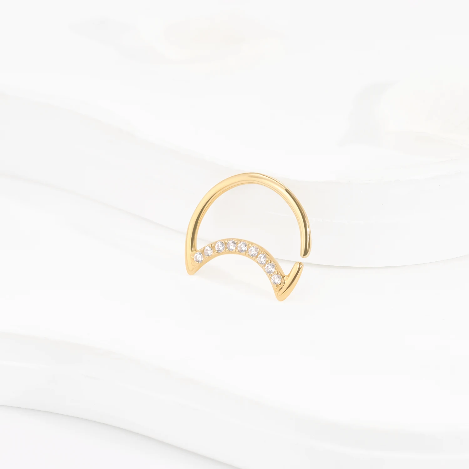 Introducing GY18G, a 14K solid gold seamless ring designed in a captivating crescent shape adorned with sparkling CZ stones. This elegant piece combines modern design with timeless charm, perfect for adding a touch of sophistication to any look. 1.0*10mm
