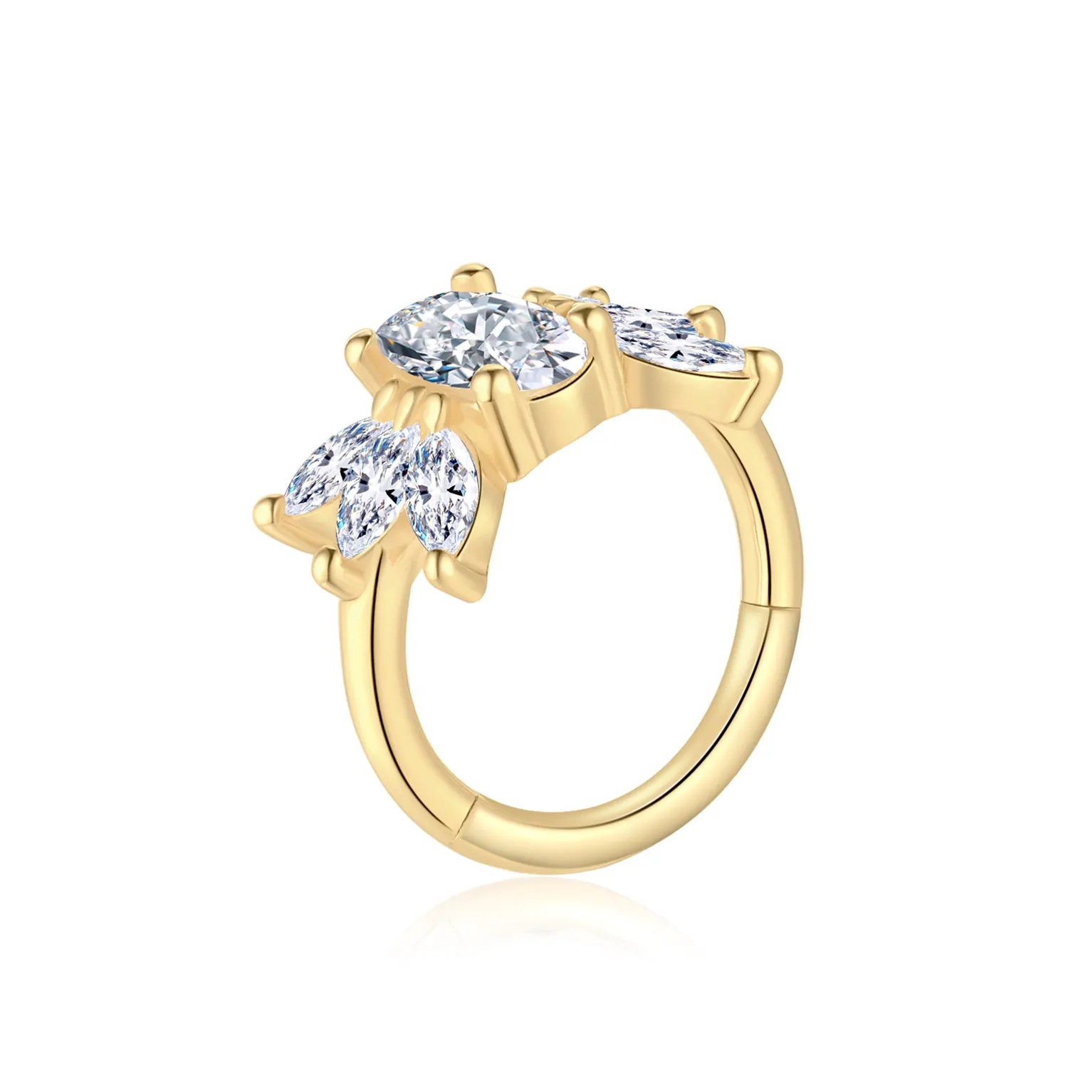 Unveiling the GZ63G-1608, a hinged segment ring where 14k solid gold meets the fire of cubic zircon. This elegant piece showcases a seamless design and a burst of brilliance, perfect for adding a sophisticated sparkle to your body piercing.