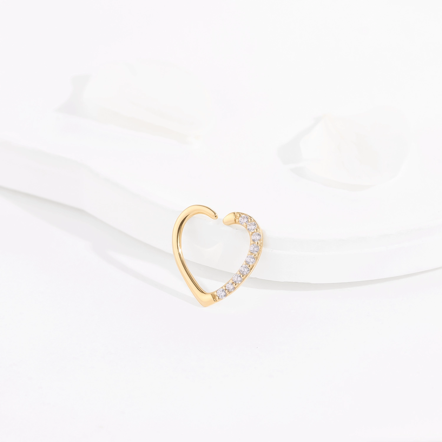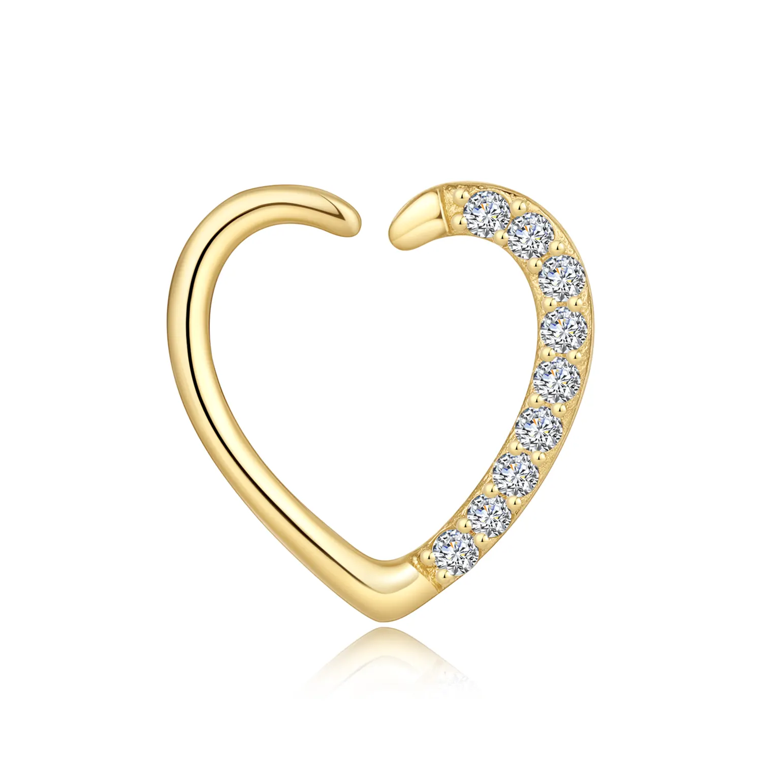 Introducing GY32G: Elevate your piercing jewelry collection with this 14K solid gold seamless ring, featuring a charming heart design adorned with sparkling CZ stones. This elegant piece adds a touch of romance and sophistication to your style. 1.2*10mm