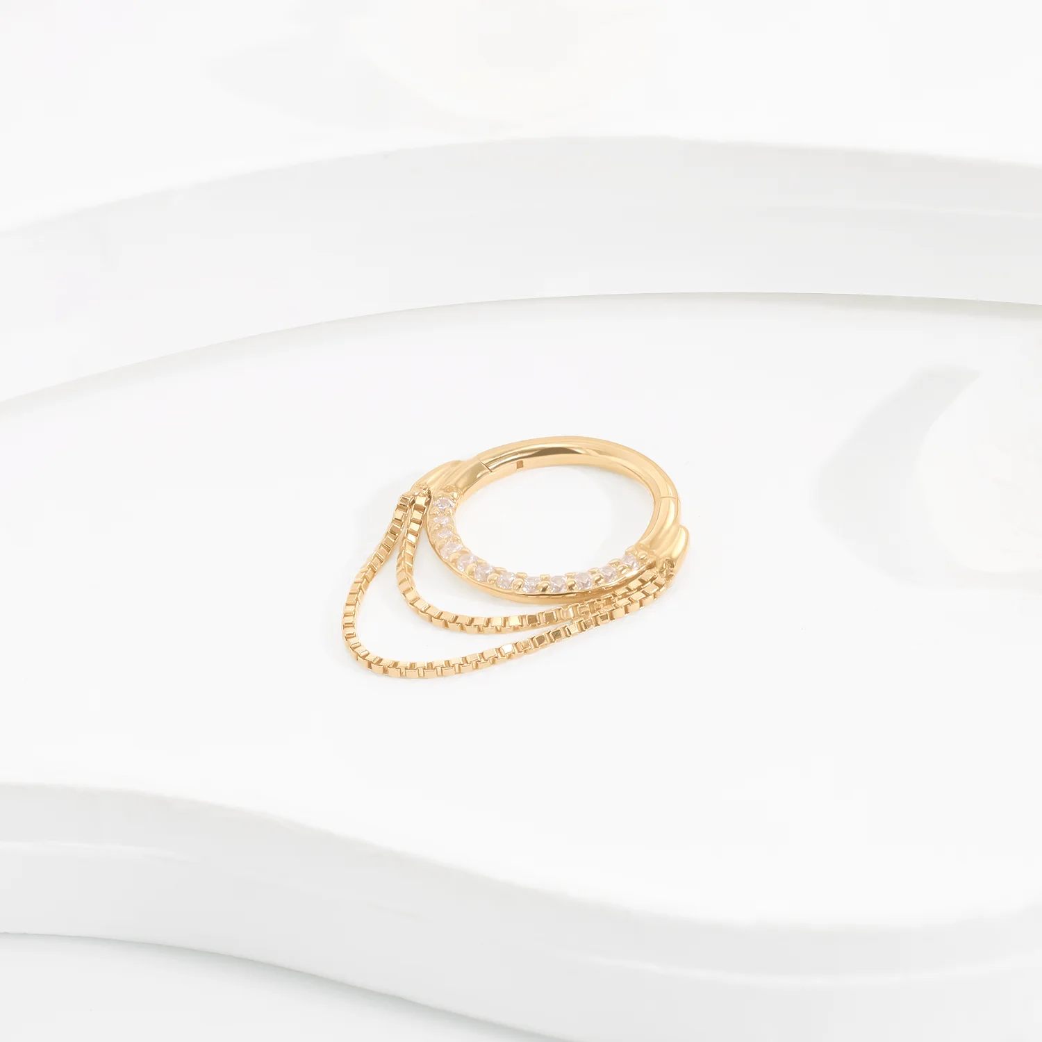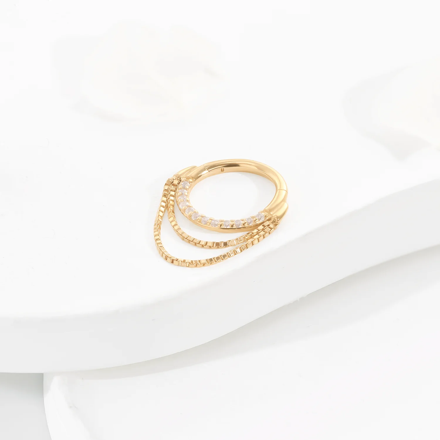 Step into luxury with the “GZ11G” 14K solid gold hinged segment ring, featuring a cascading CZ stone design. This piece combines glamour and elegance effortlessly. 1.2*8mm