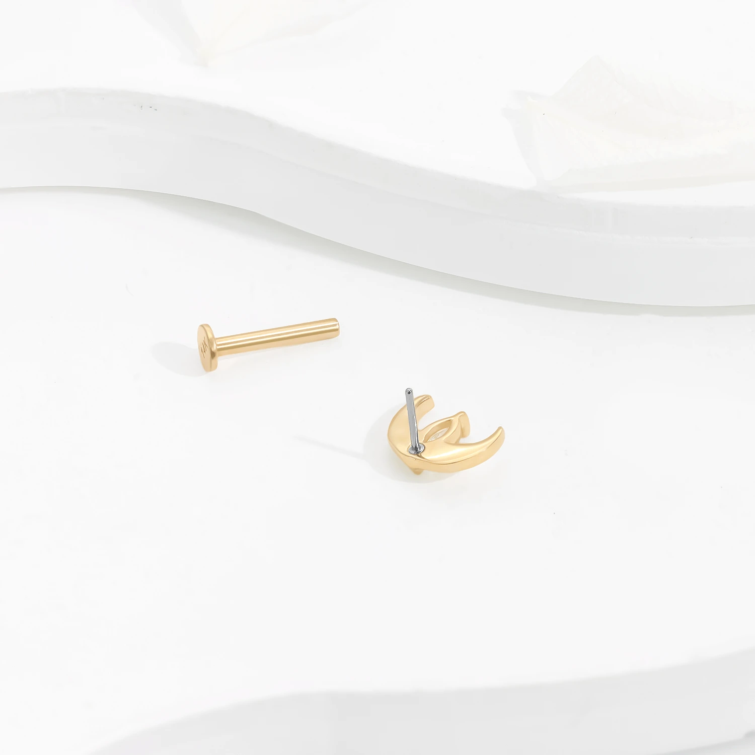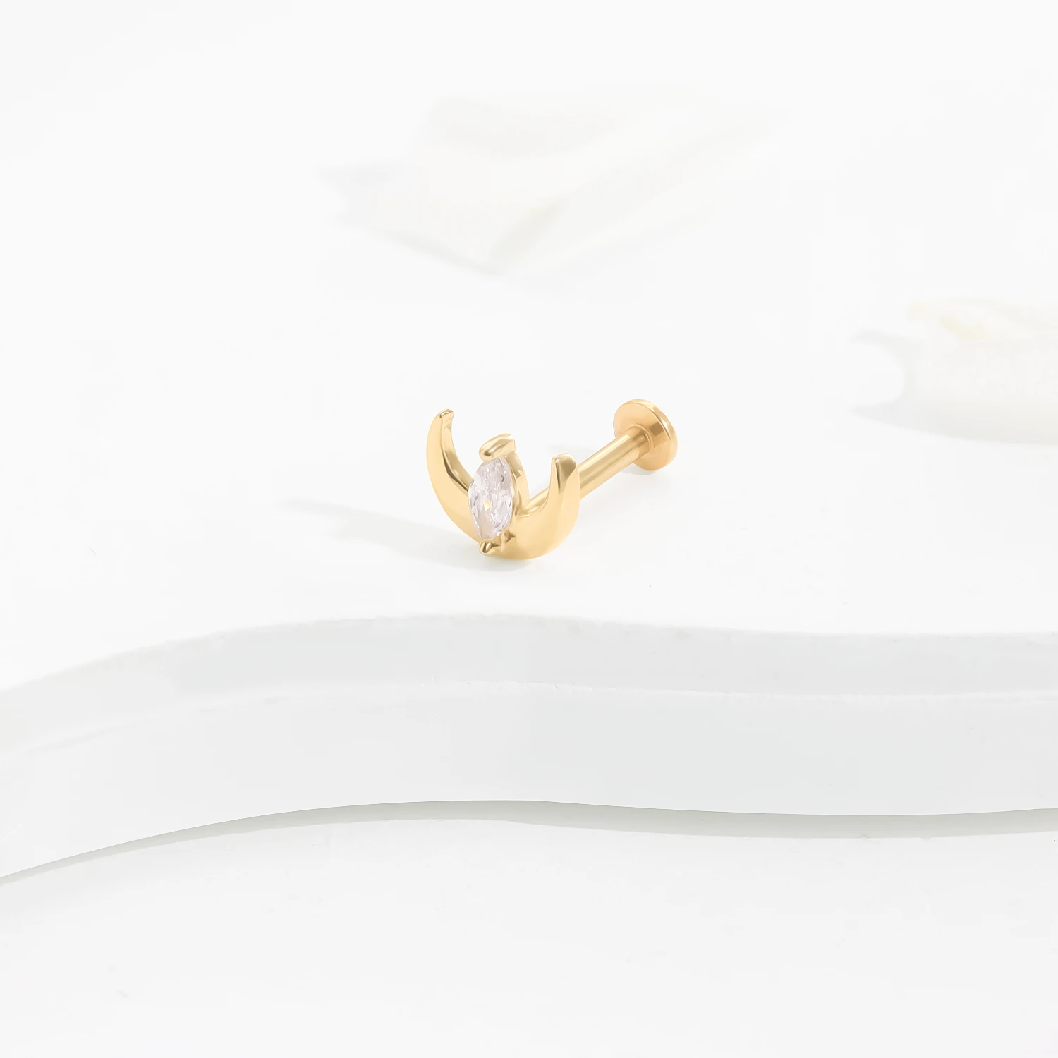 Discover the GU91G: A 14K Solid Gold Crescent Moon Labret Stud, cradling a brilliant CZ stone for a touch of celestial elegance in your style.
