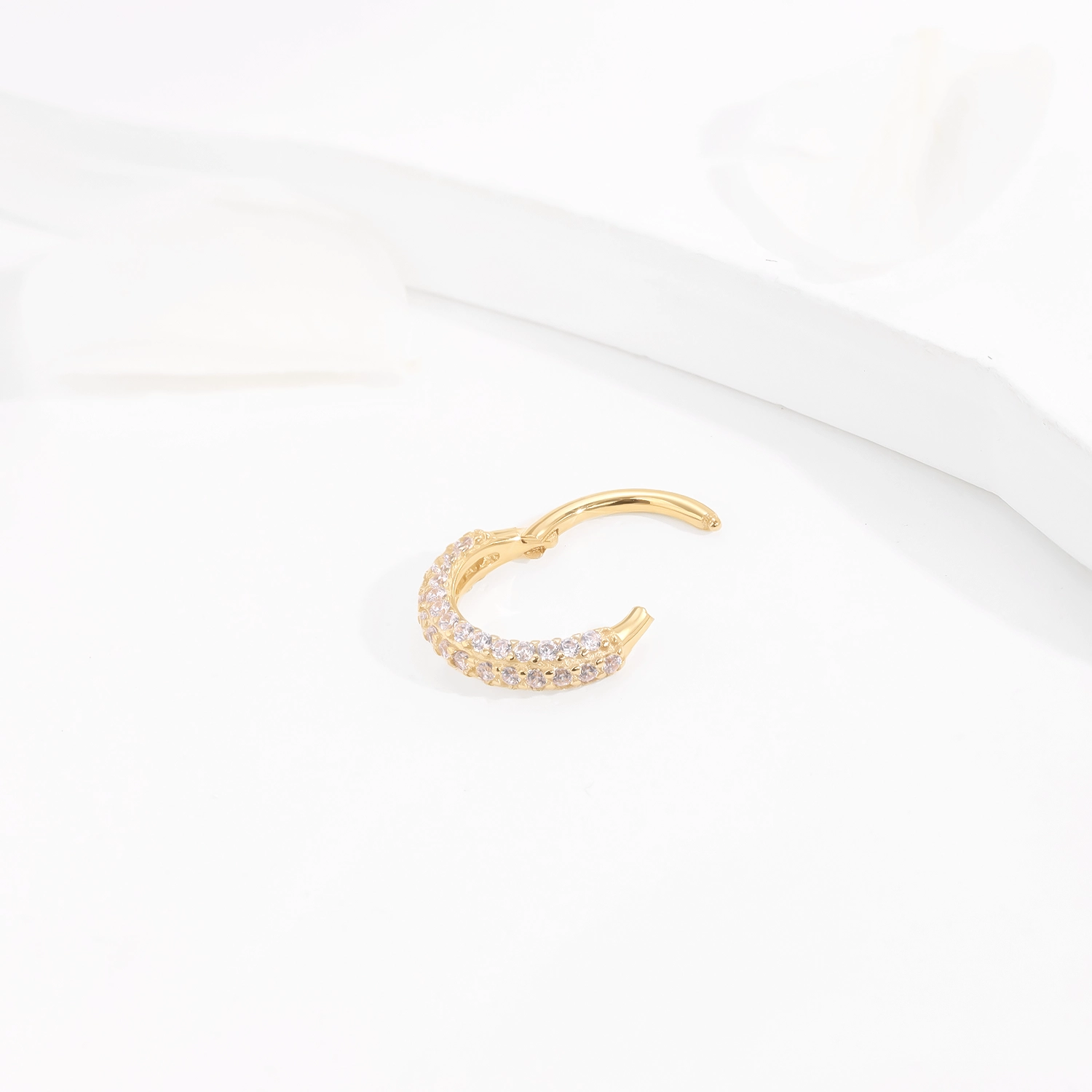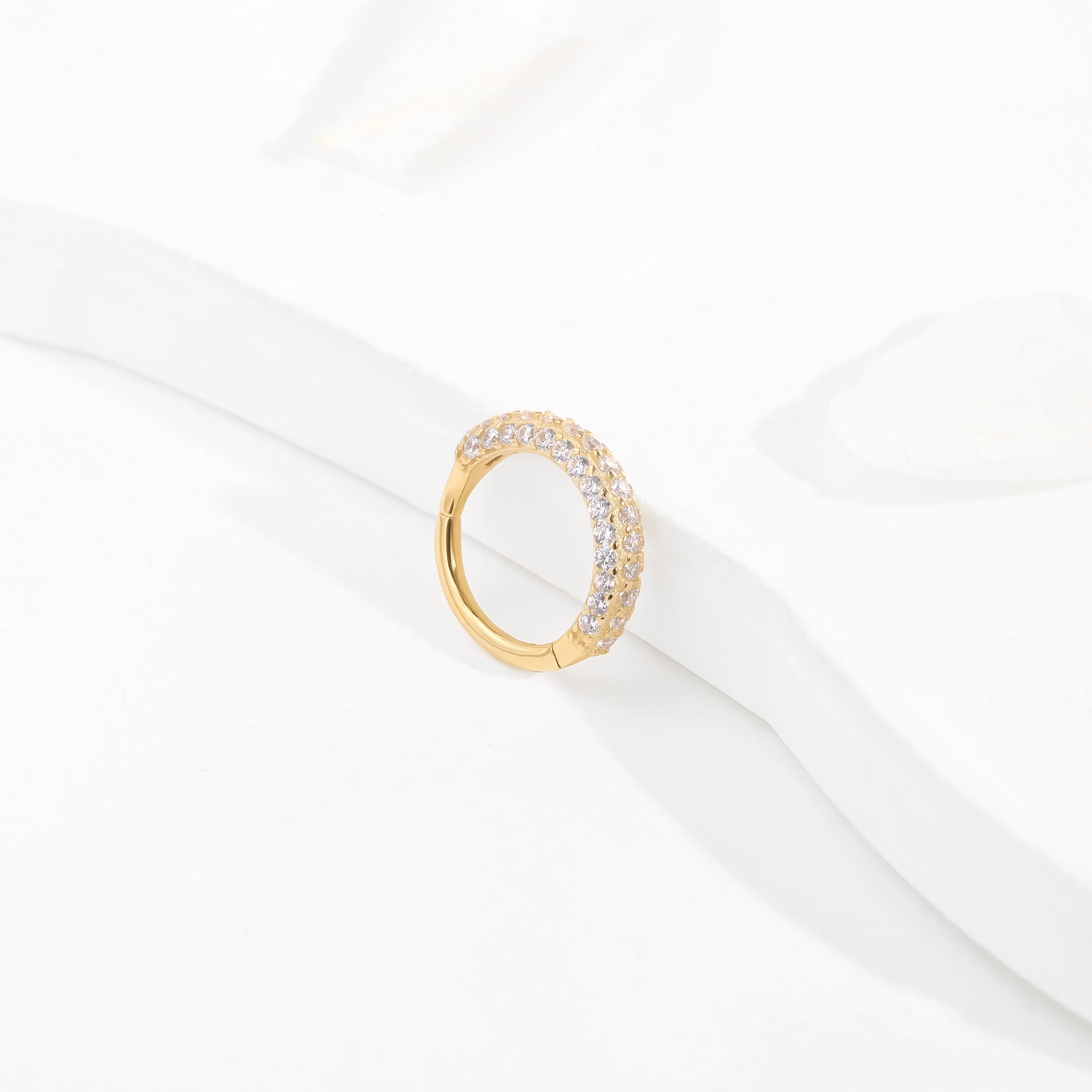Introducing GZ90G: Elevate your piercing jewelry collection with this 14K solid gold hinged segment ring, featuring a luxurious multi-stone design adorned with sparkling CZ stones. This elegant clicker adds a touch of brilliance and sophistication to your style.1.2*8mm