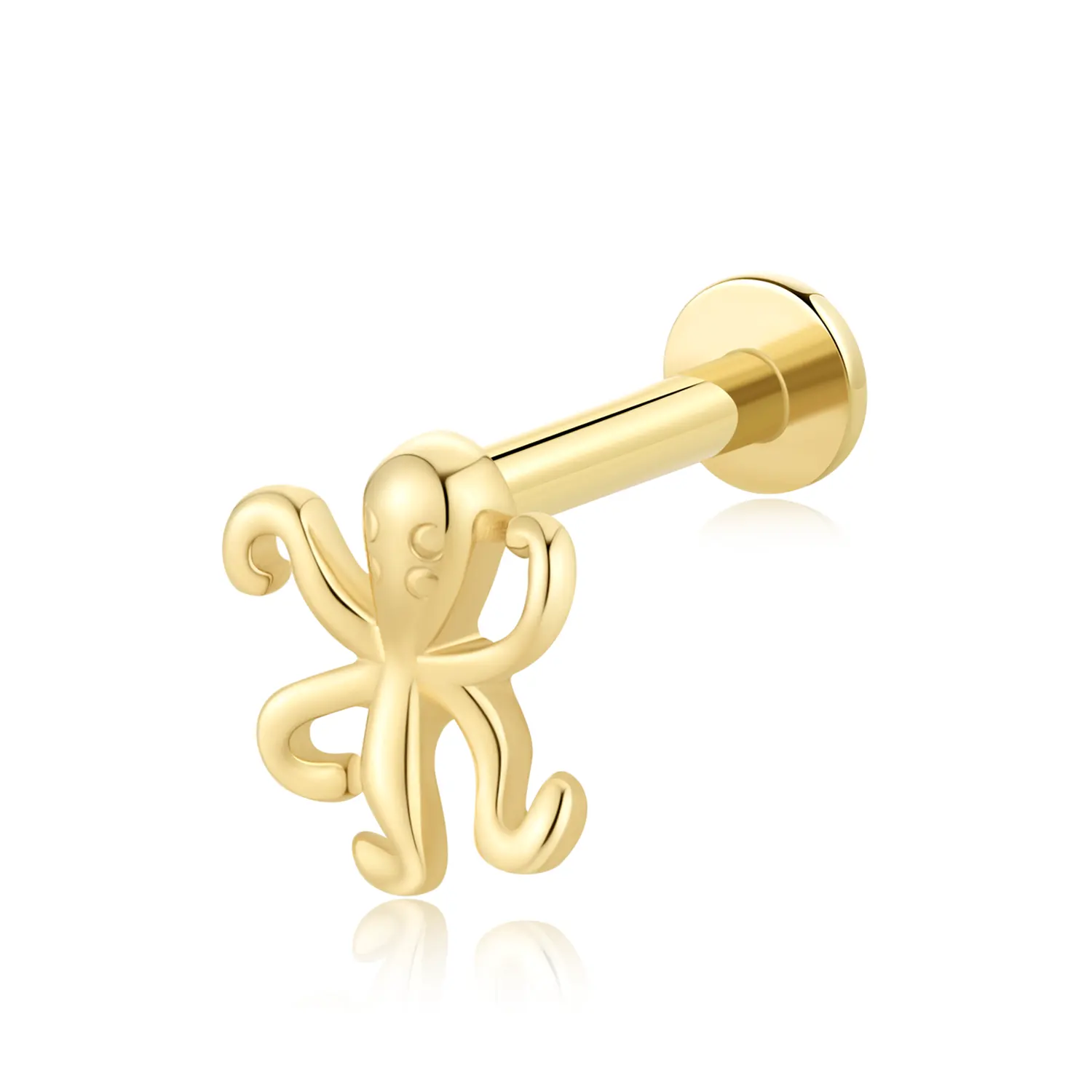 14K Solid Gold Octopus DesignThreadless Labret Stud