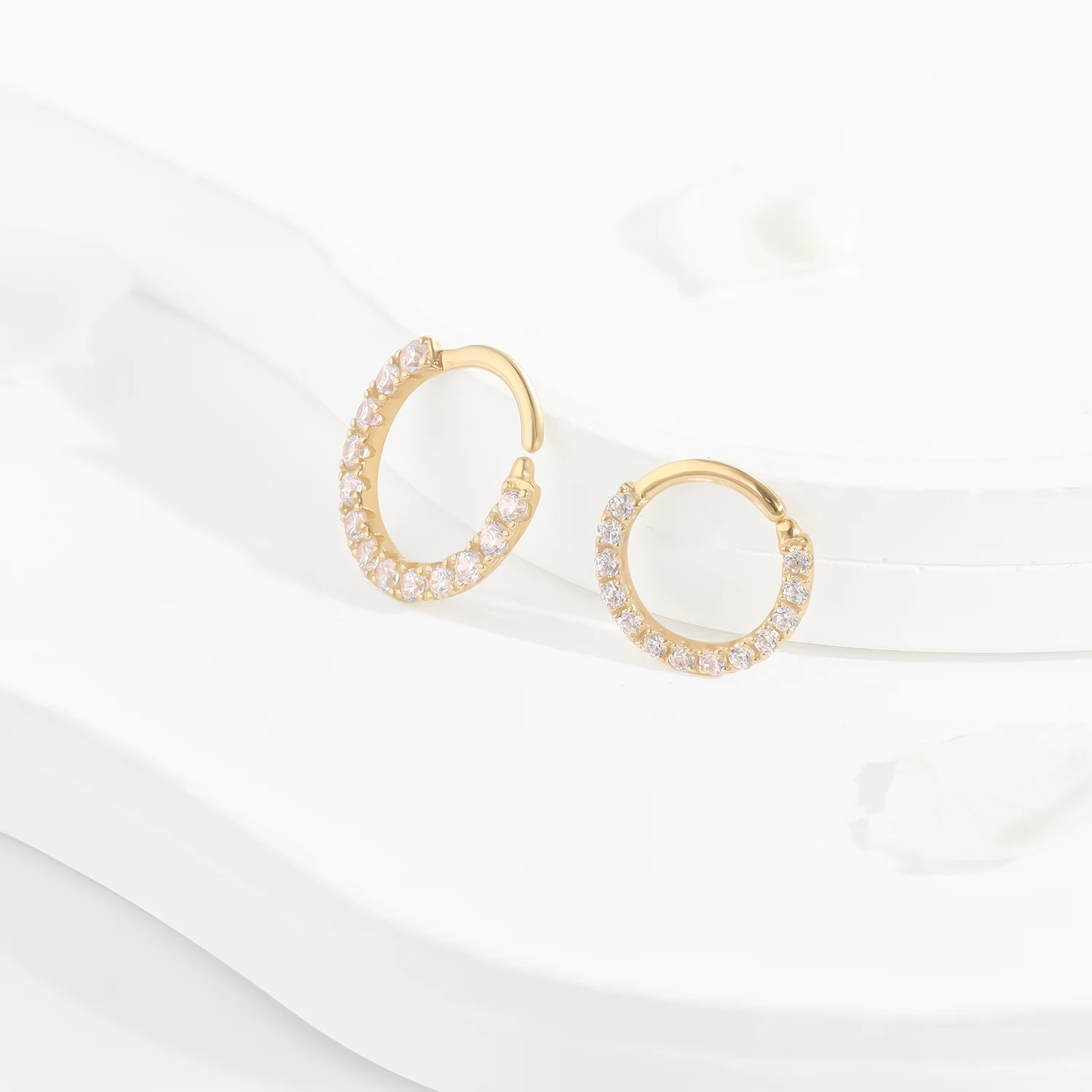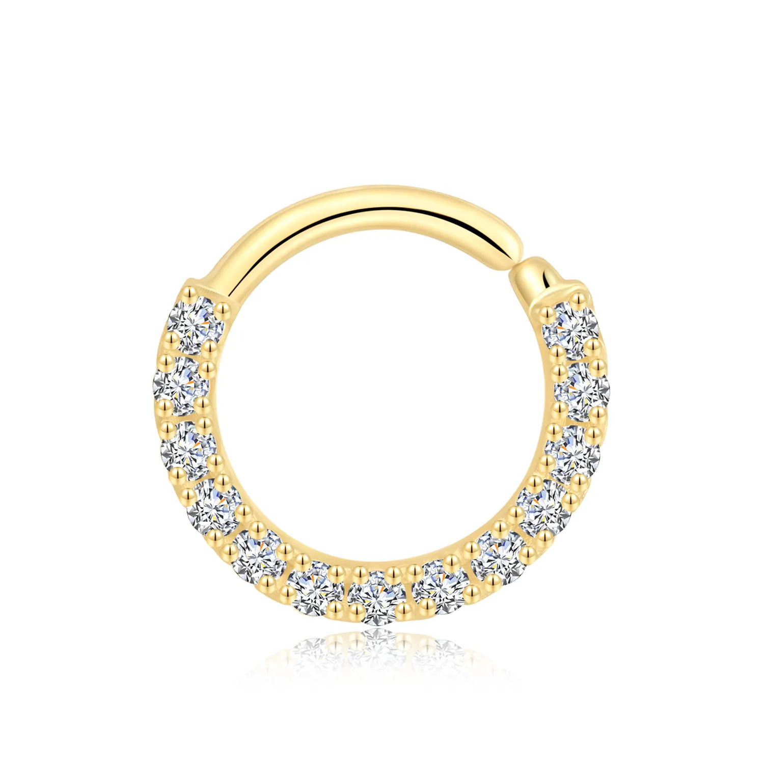 Discover the allure of GY16G, our 14K solid gold seamless hoop ring, adorned with a circle of sparkling CZ stones. Each stone is meticulously set, enhancing the ring’s radiant glow and elegance. Perfect for those seeking a touch of sophistication in their jewelry collection. 1.2*8mm/1.2*10mm