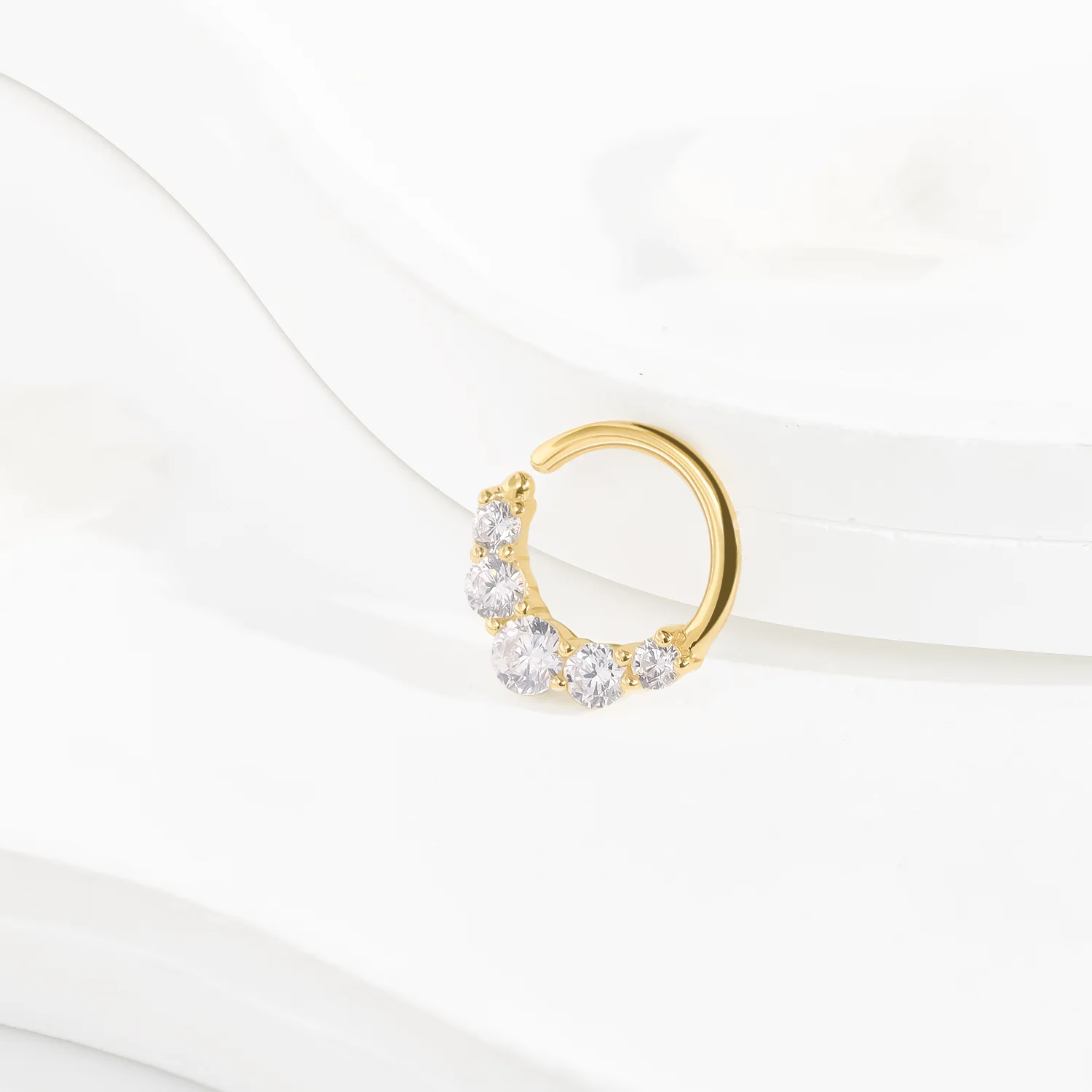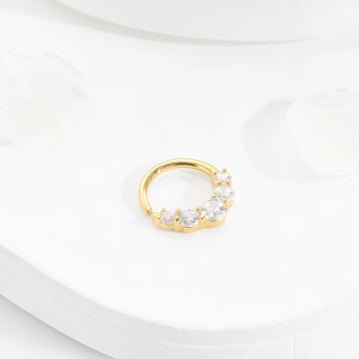 Grace your appearance with the “GY37G” 14K solid gold seamless ring, featuring a unique floral cluster of cubic zirconia. This exquisite design adds a radiant touch to any piercing.