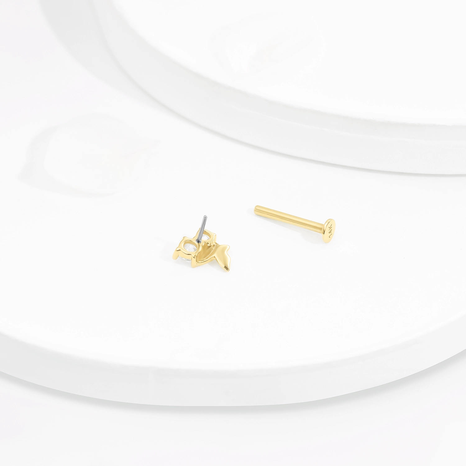 The GUE4019G model is a stunning 14K solid gold threadless labret stud designed with a delicate butterfly motif adorned with brilliant CZ stones. This whimsical piece captures the elegance and grace of a butterfly, adding a playful yet sophisticated touch to your look. The threadless design ensures a secure and comfortable fit, making it easy to wear and remove. Crafted from high-quality gold and featuring sparkling CZ stones, this labret stud is both durable and stylish. Its versatile design is suitable for various piercings, including lip and ear piercings, offering a blend of elegance and charm. Whether you’re looking to enhance your everyday style or add a unique touch to a special outfit, the GUE4019G is the perfect choice. Elevate your jewelry collection with this exquisite piece and embrace the timeless beauty of the butterfly.