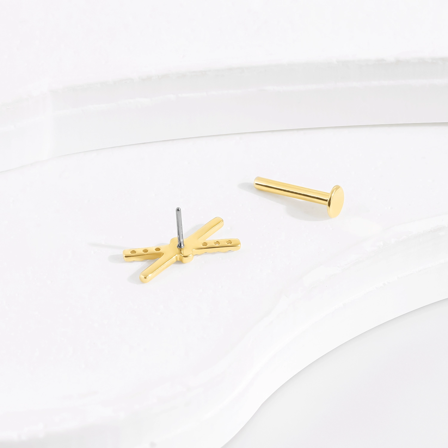 Introducing GUE4033G, a sleek 14K solid gold threadless labret stud designed with modern elegance in mind. Featuring six sparkling CZ stones, this refined piece of body jewelry adds a touch of brilliance to your look. The threadless design ensures a secure and comfortable fit, making it an ideal choice for those who appreciate both luxury and minimalism.