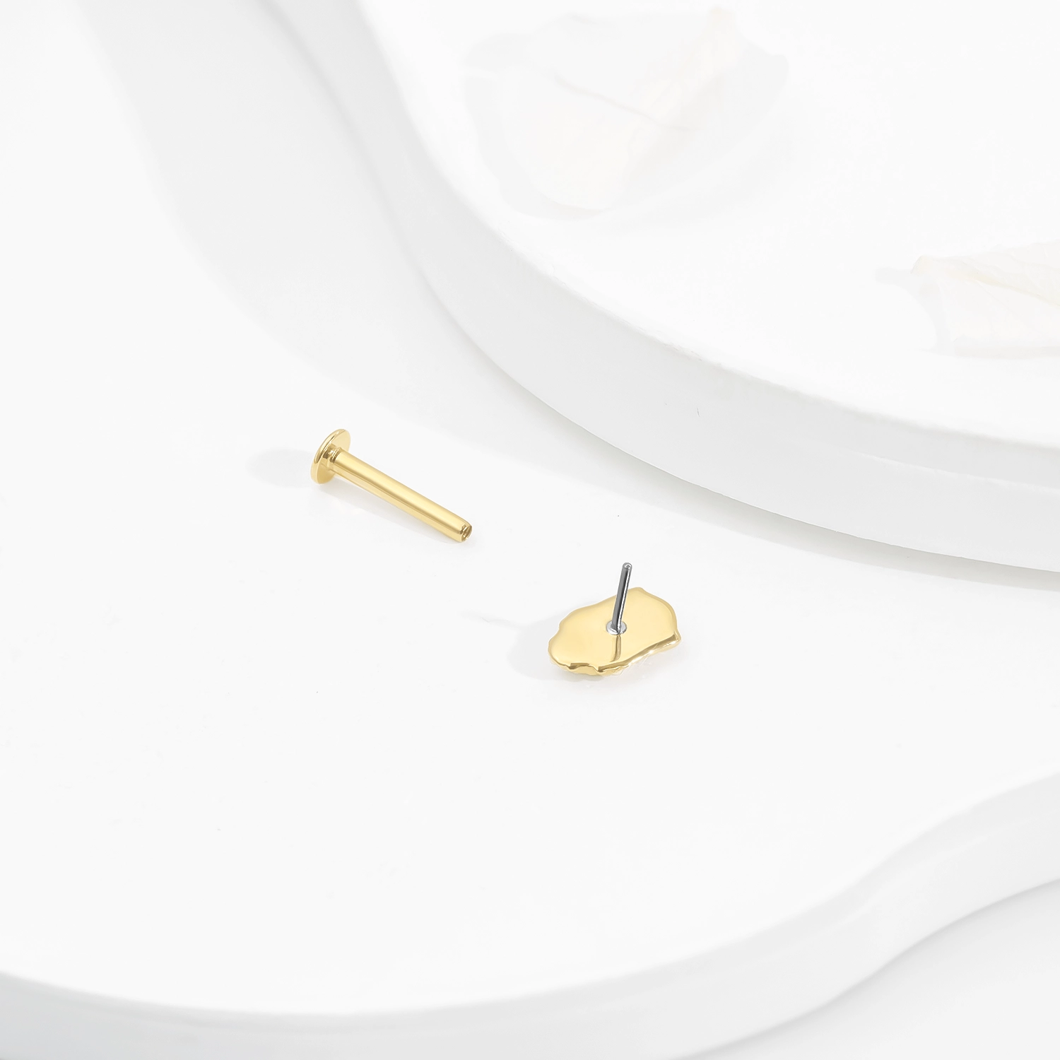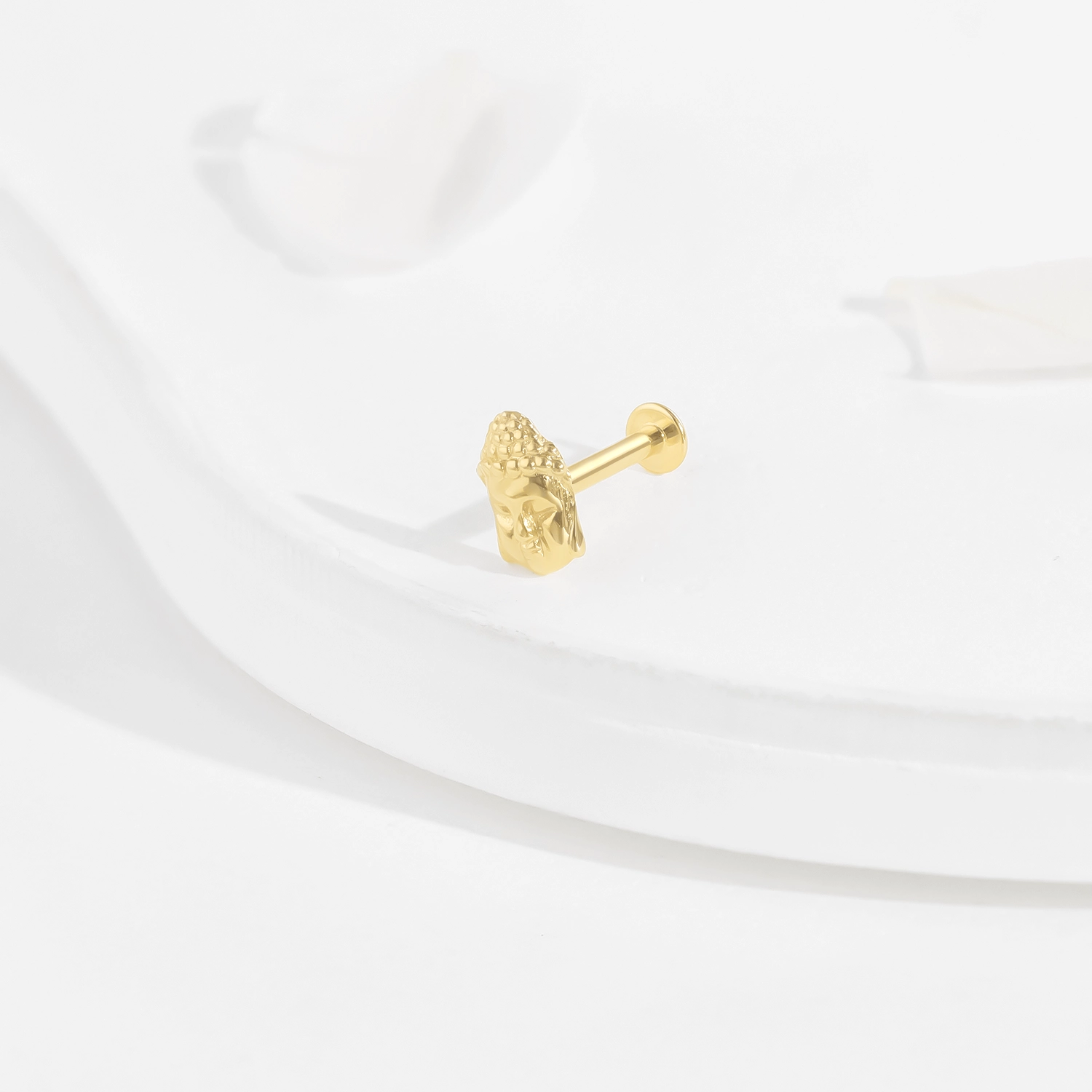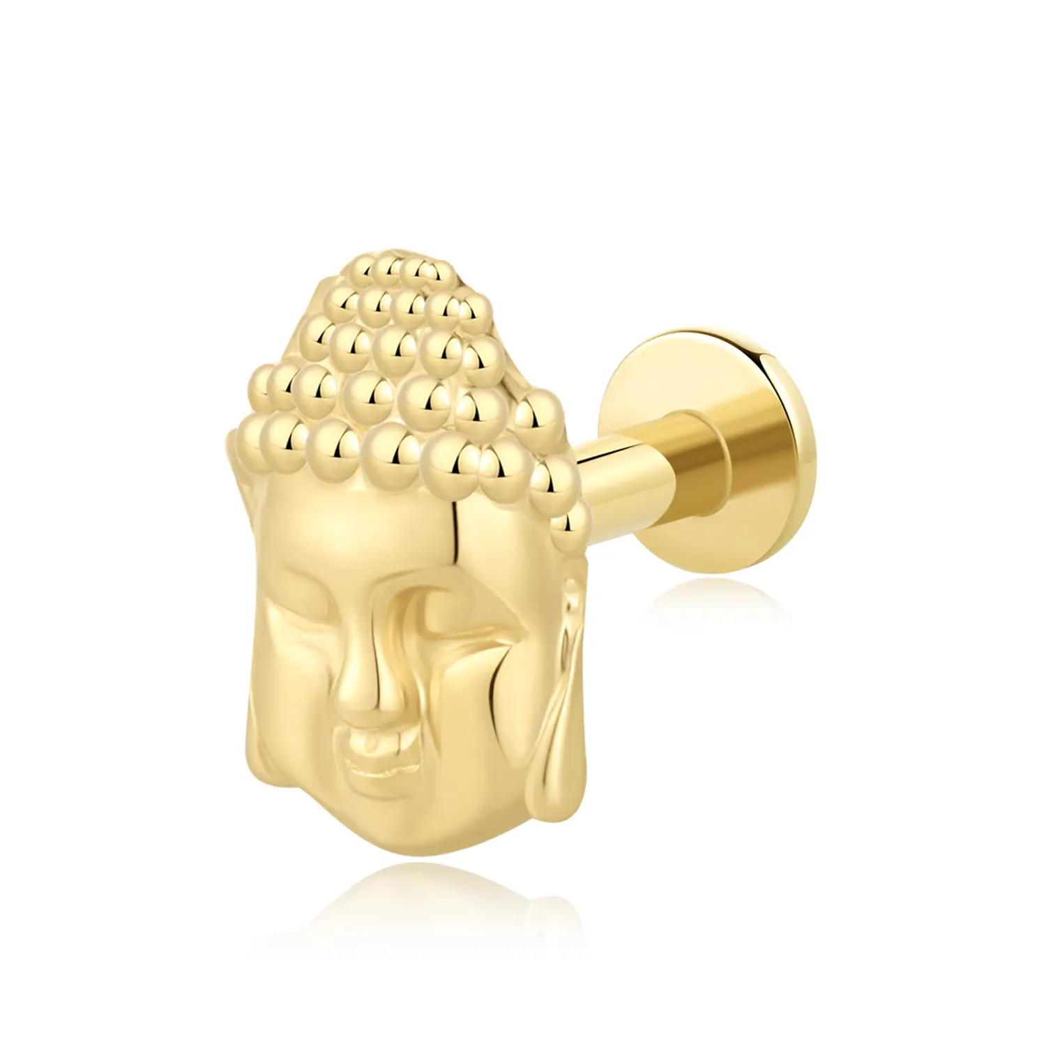 Introducing GU228G: Elevate your body jewelry collection with this 14K solid gold threadless labret stud, featuring a beautifully detailed Buddha head design. This unique piece adds a touch of spirituality and elegance to your style. Pin:0.45*4.5mm