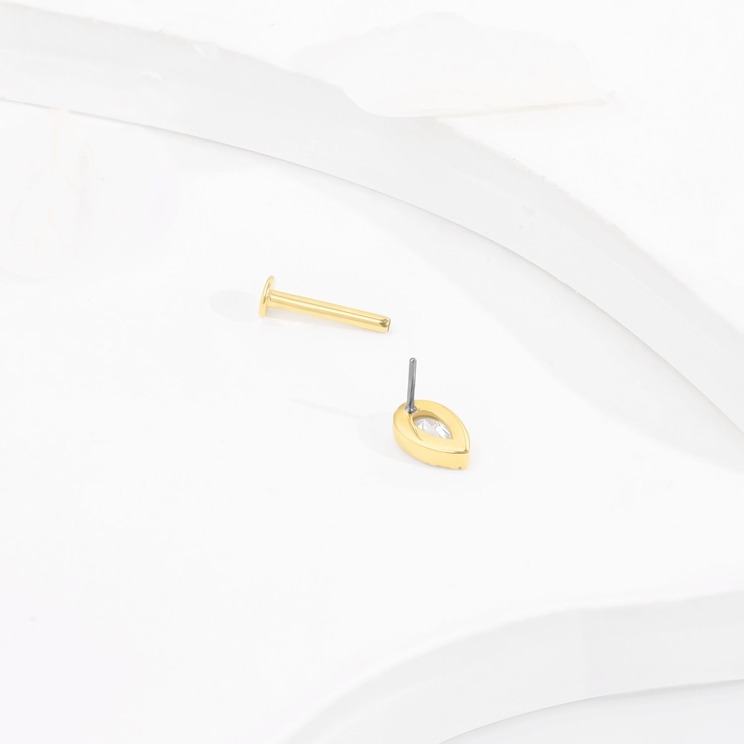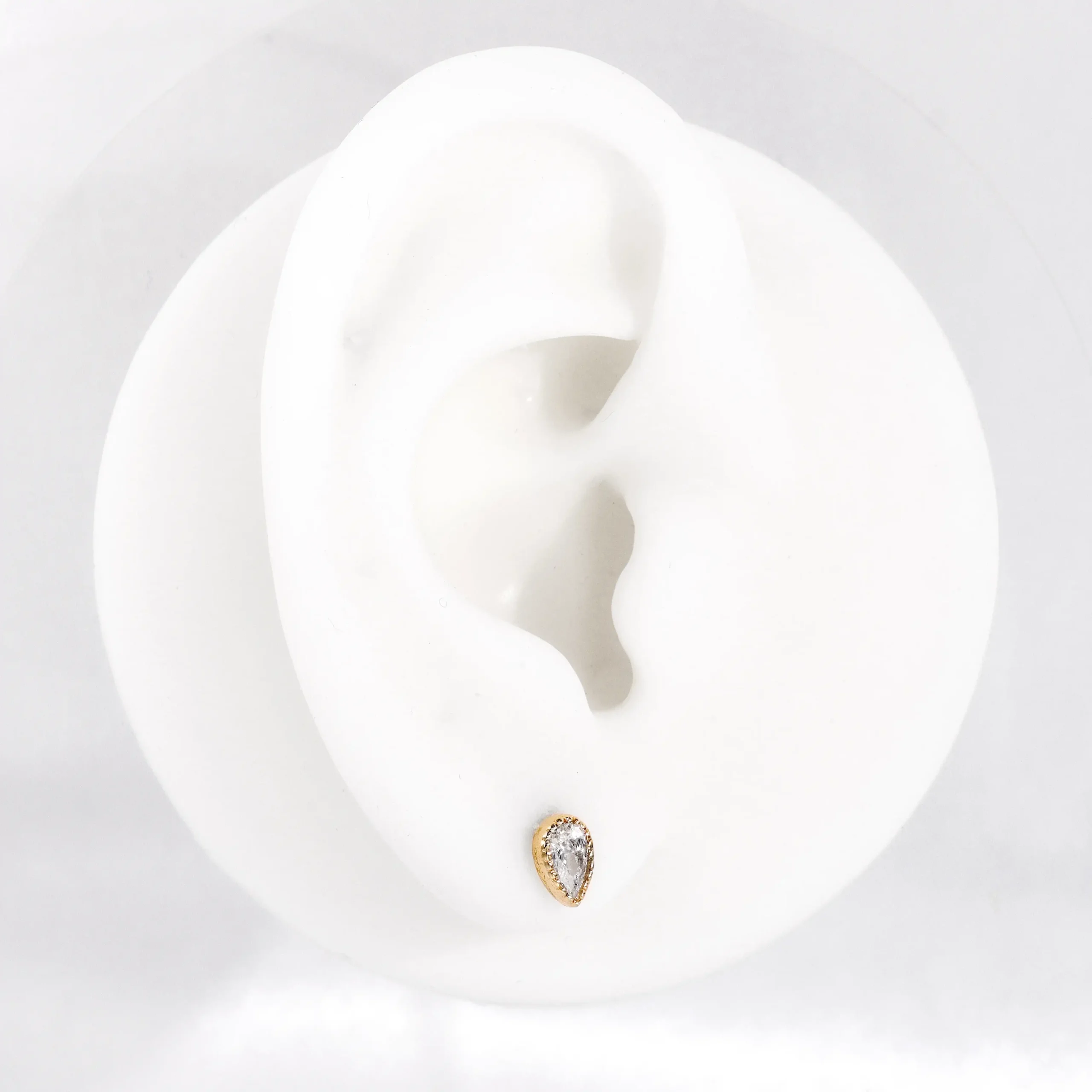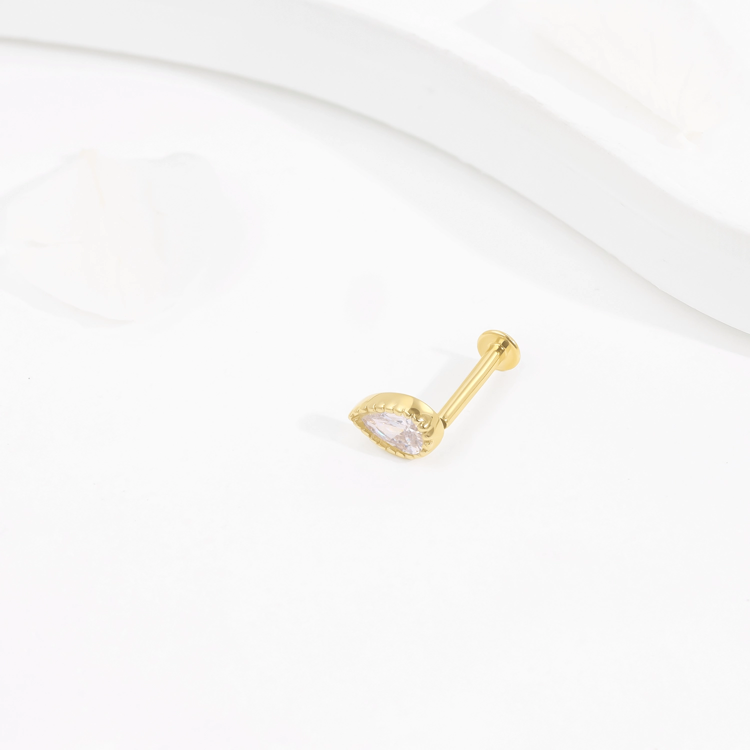 Introducing GU10G: Elevate your body jewelry collection with this 14K solid gold threadless labret stud, featuring a stunning teardrop-shaped CZ stone. This elegant piece adds a touch of sophistication and sparkle to your style.