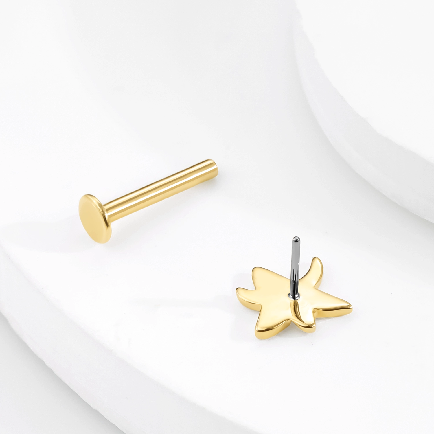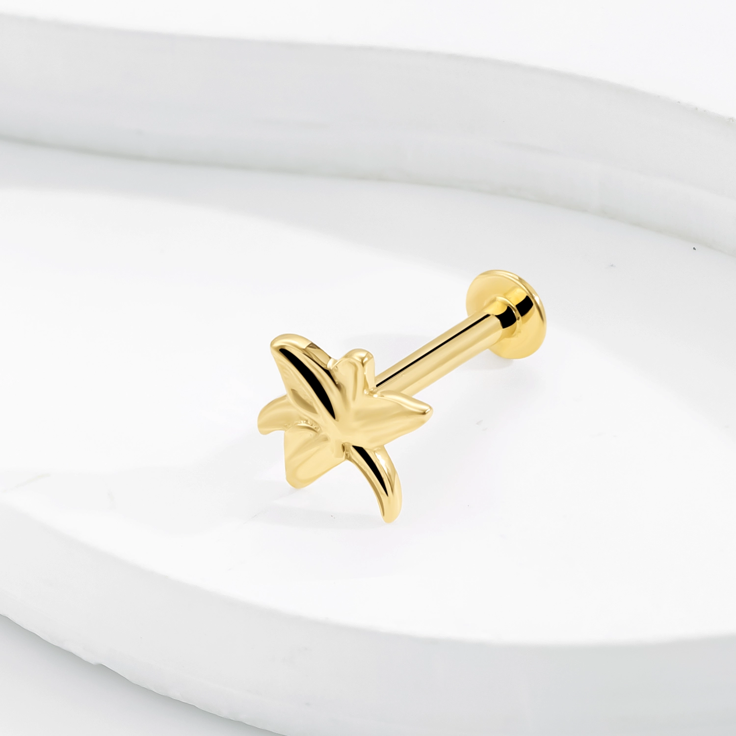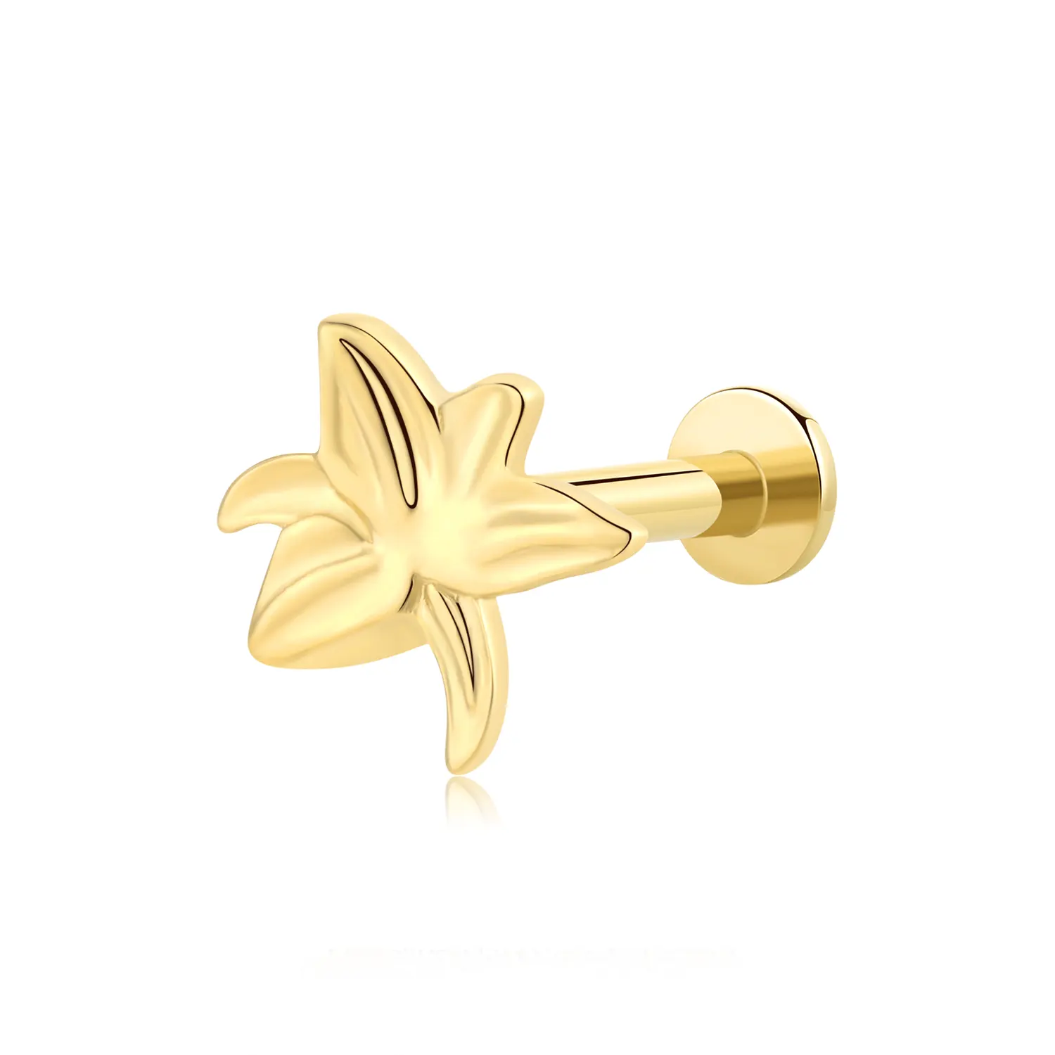 Introducing GUB24375G – This 14K solid gold threadless labret stud features a delicately sculpted lily flower, adding a soft botanical touch to your piercing collection. Perfect for cartilage or lip piercings.