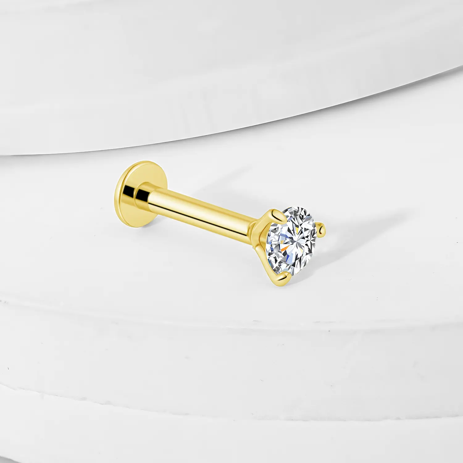 Introducing G8PU40463G-LD3 — a sleek 18K solid gold threadless labret stud featuring a brilliant round-cut lab diamond. Perfect for anyone who loves minimalist elegance in body jewelry.