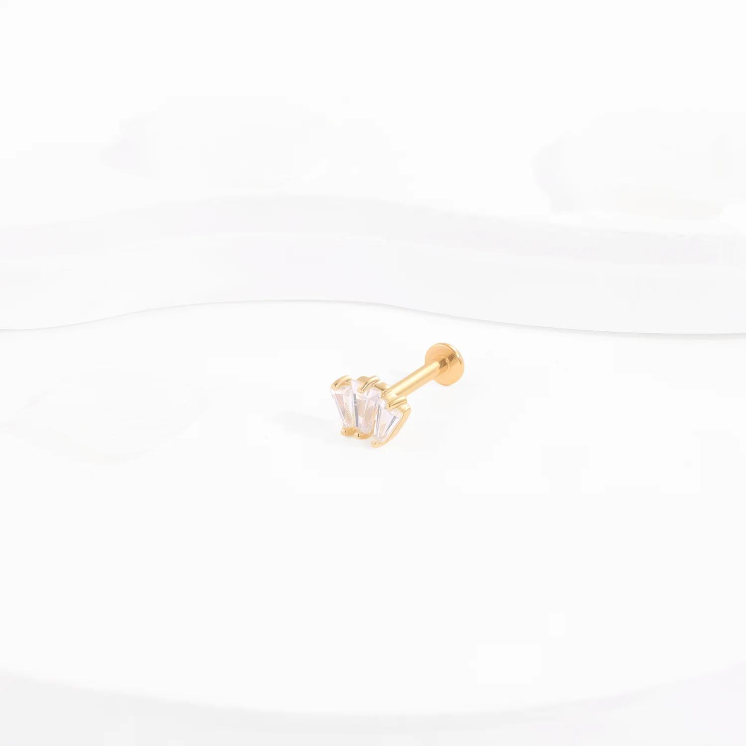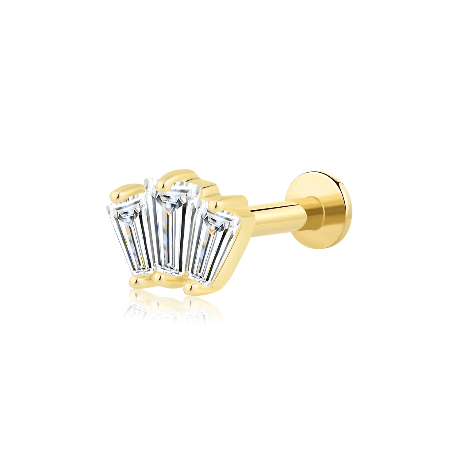 Radiate triple the charm with the GUB511000G, a threadless 14K gold labret stud featuring a trio of brilliant CZ stones, secured by a steel push pin. Pin:0.45*45mm