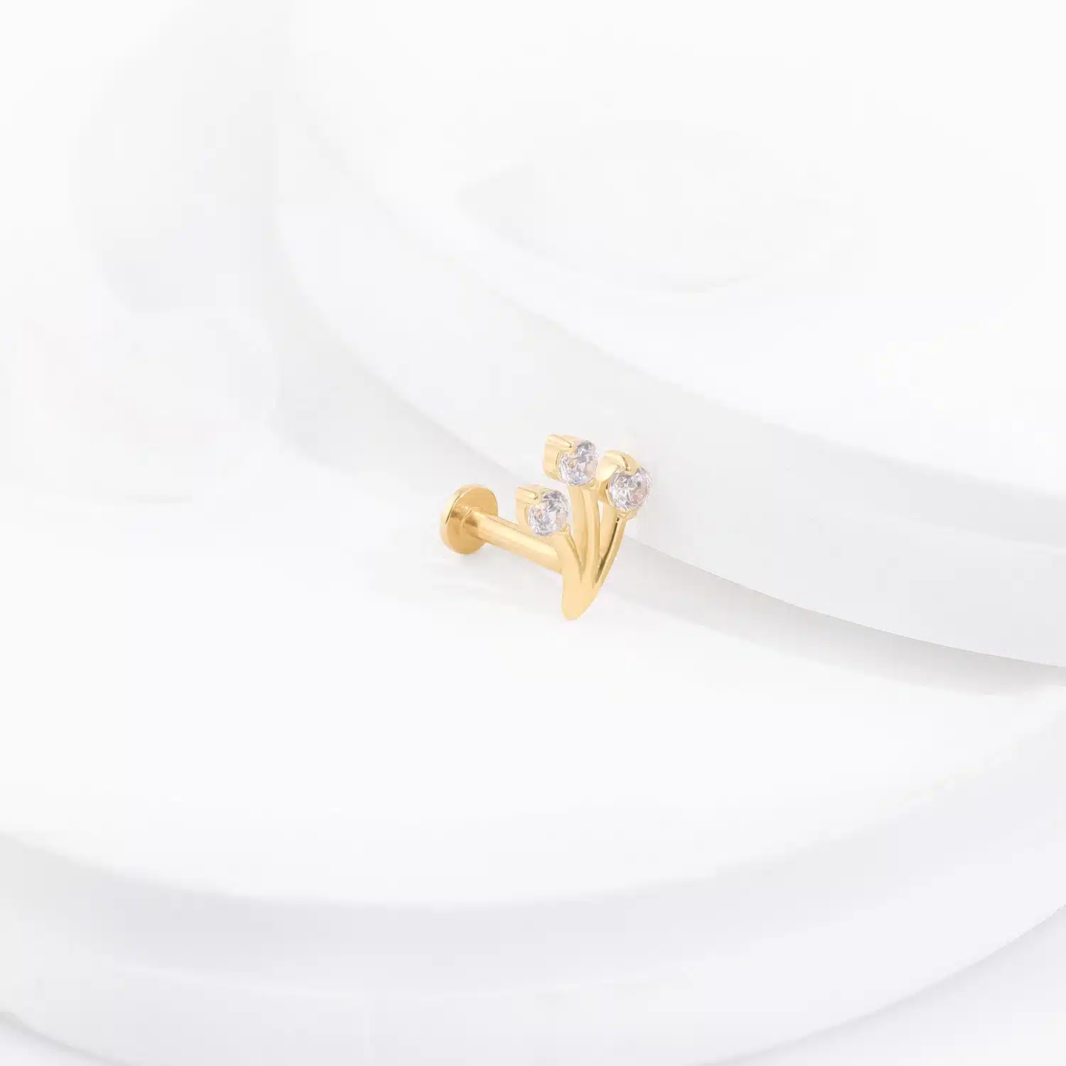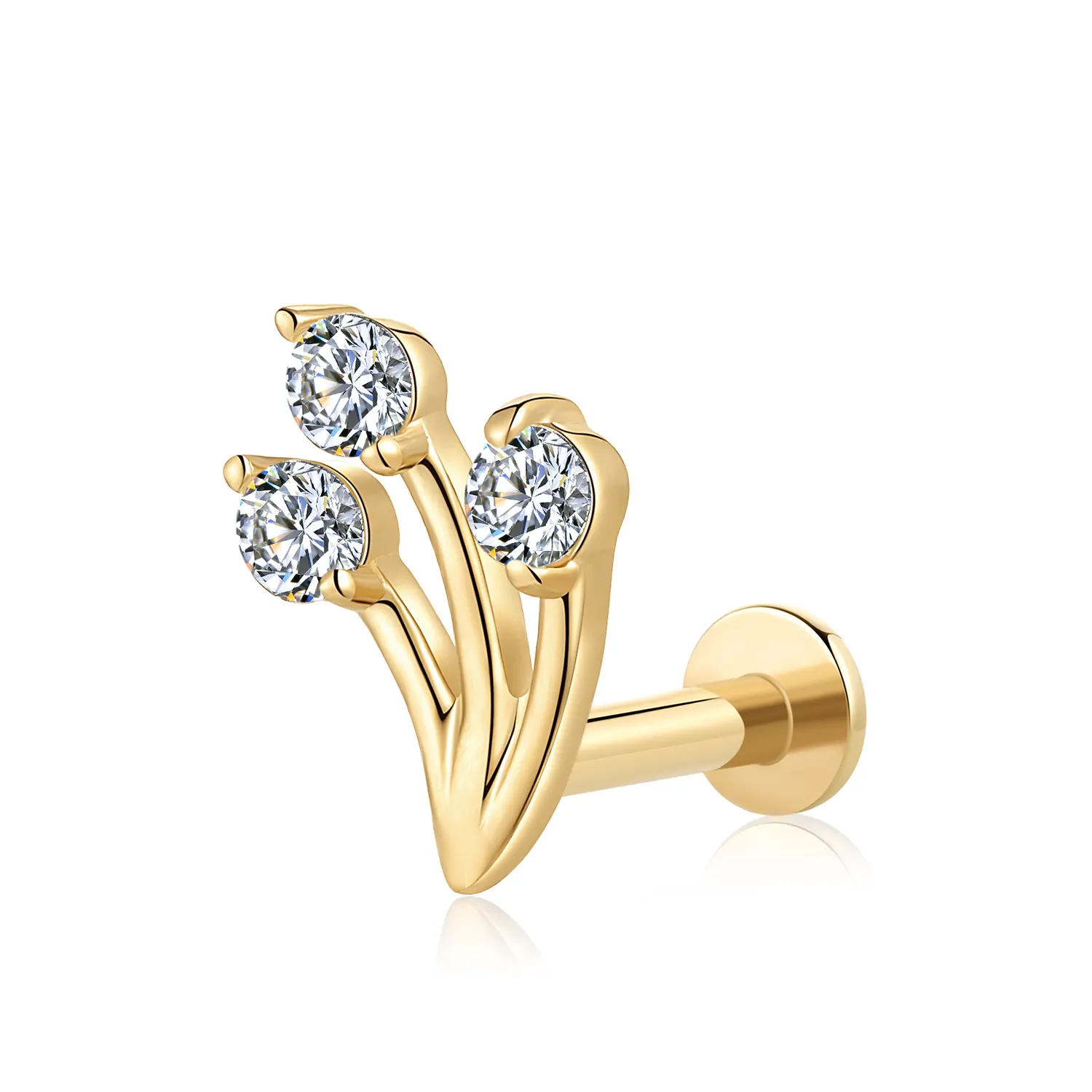 Unveil nature’s splendor with the GV208G-CL piercing jewelry. An internally threaded marvel in 14K solid gold, it blooms with cubic zircon petals, offering a radiant flourish to your body jewelry ensemble. Stainless Steel Pin=0.9mmRD 2.0mm*3