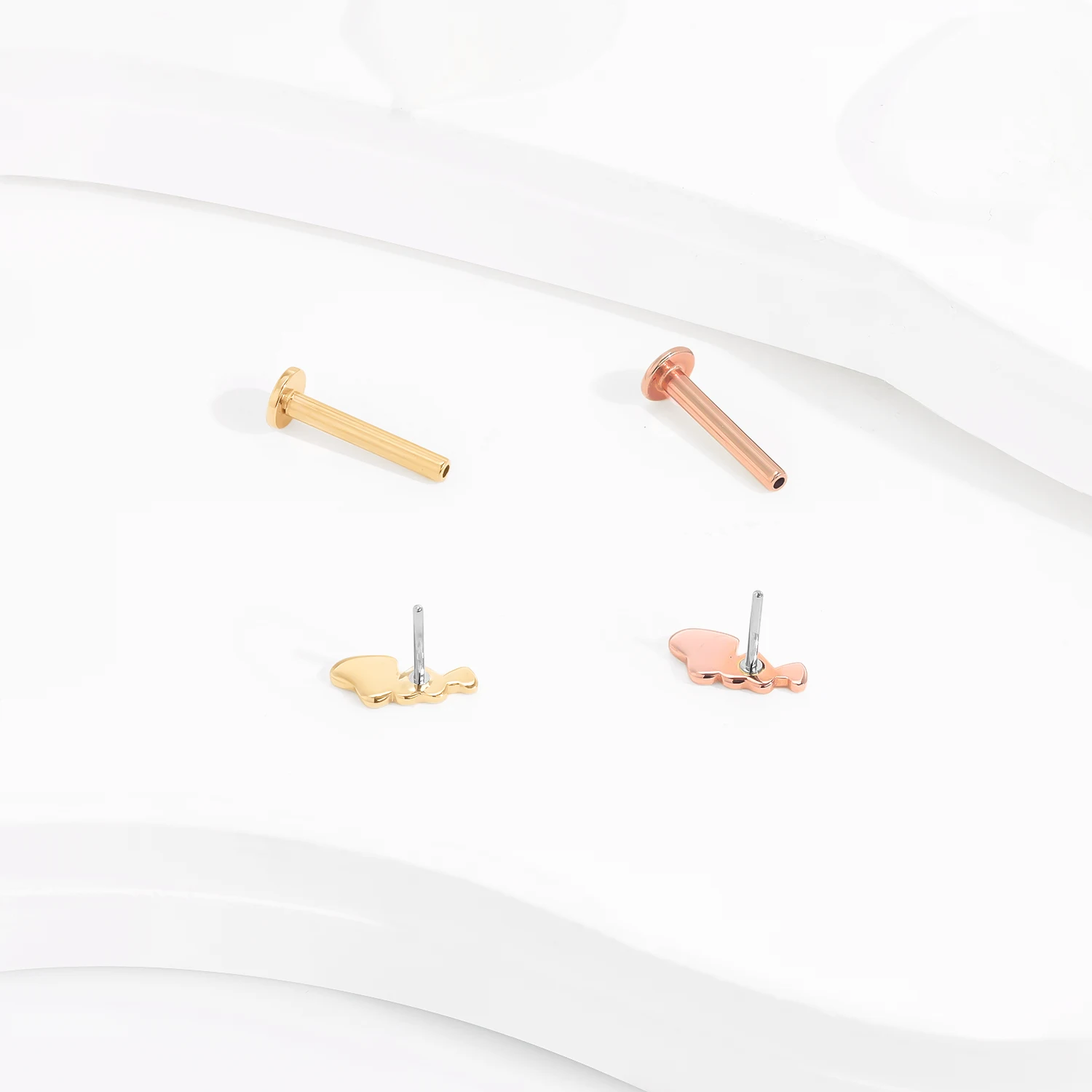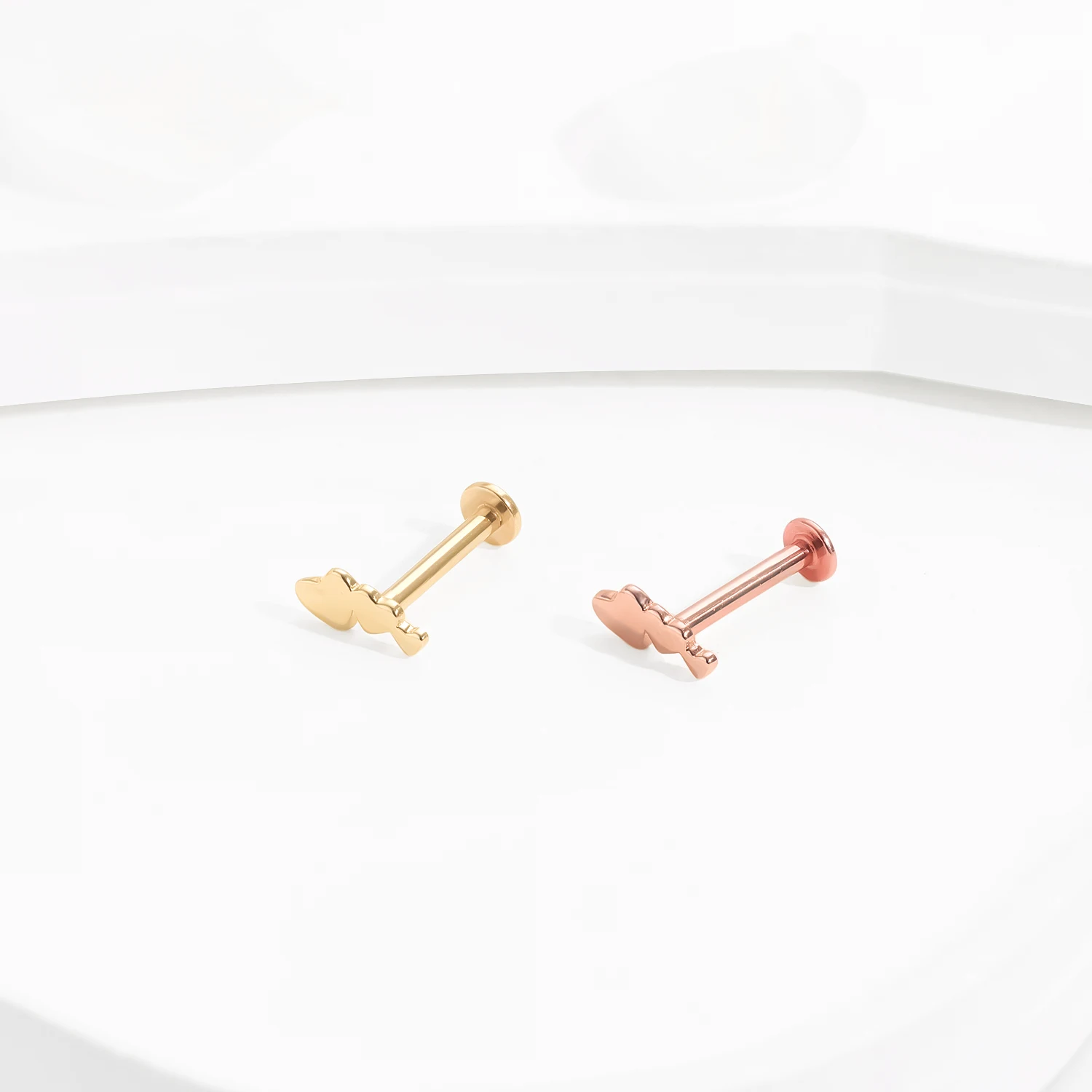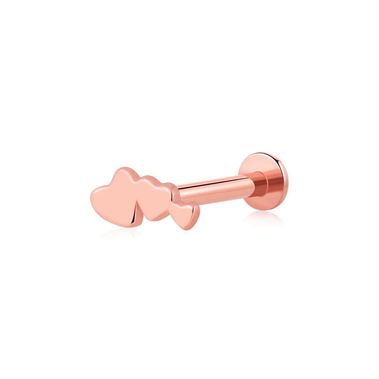 Cherish the tender touch of the GUA154G, a 14K gold labret stud with three petite hearts, offering a delicate tribute to love in your body jewelry collection.