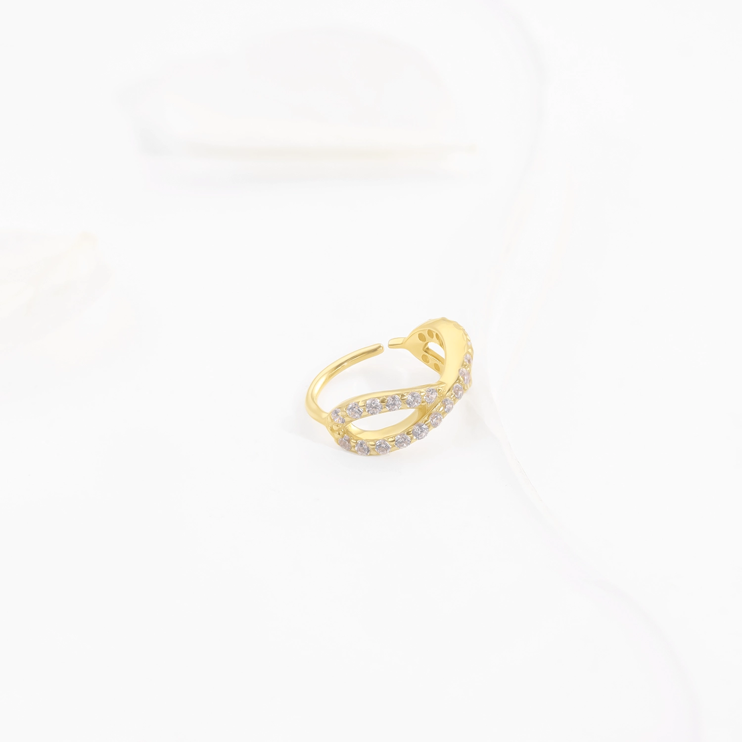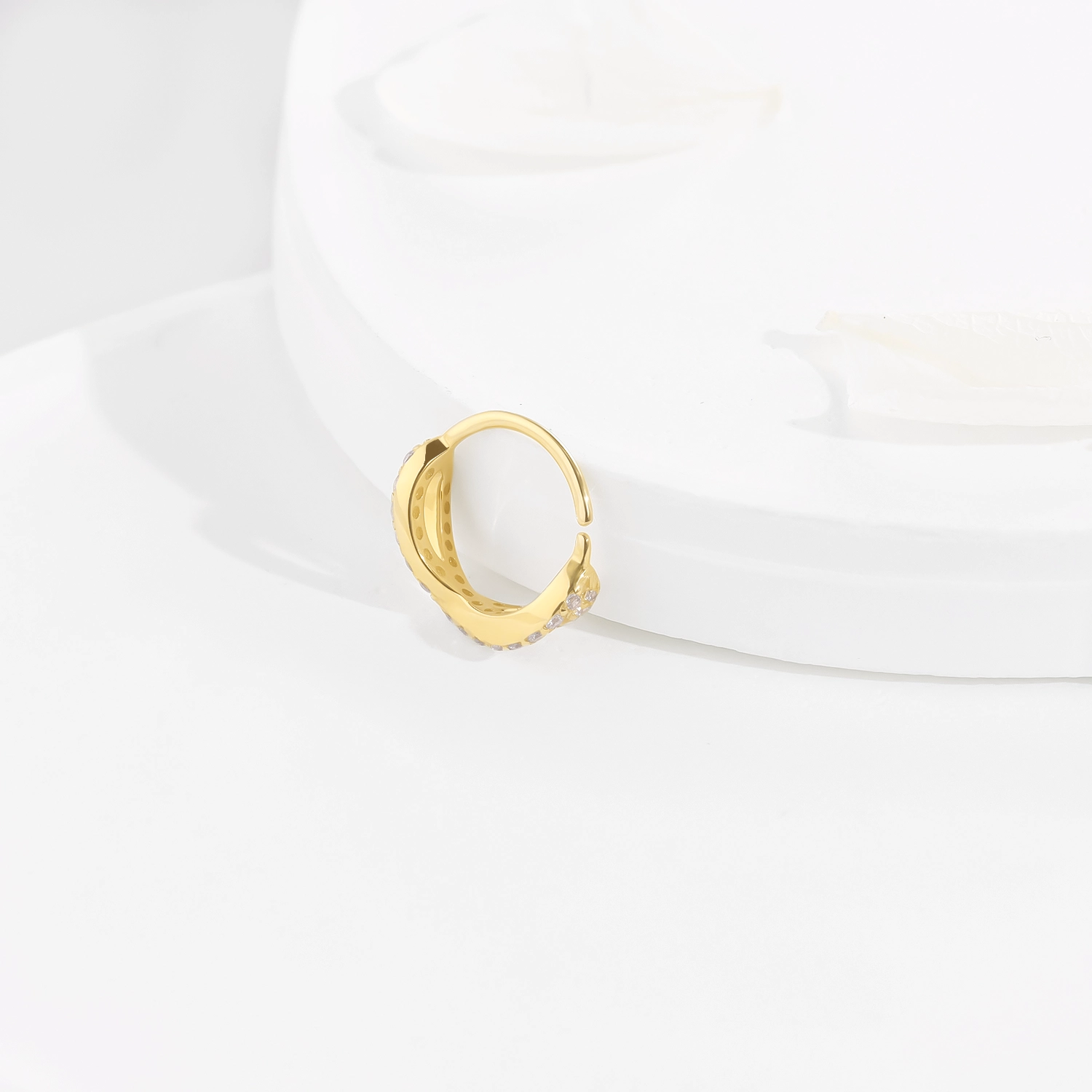 Introducing GY27G: Elevate your piercing jewelry collection with this 14K solid gold seamless ring, featuring a stunning twisted design adorned with sparkling CZ stones. This elegant piece adds a touch of luxury and sophistication to your style. 0.8*8mm