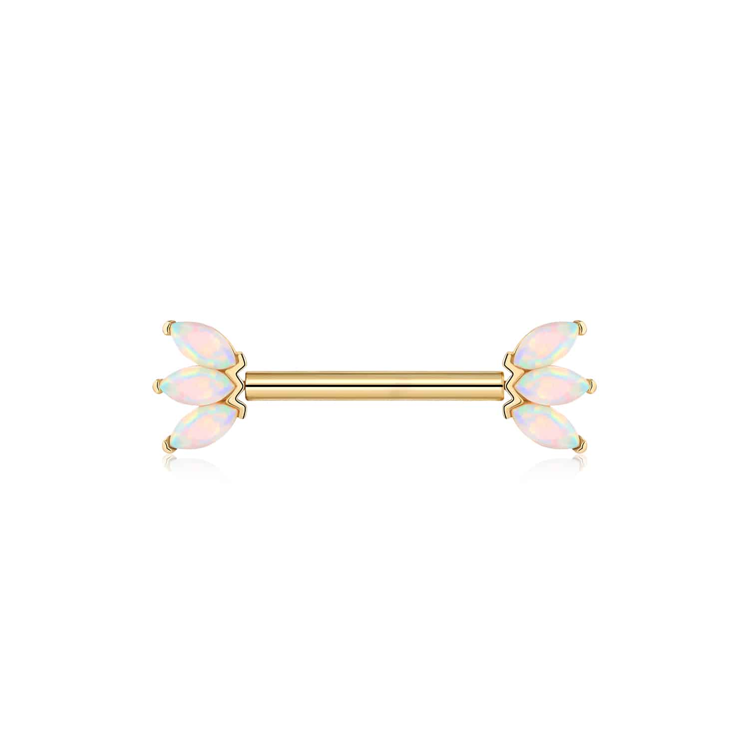 Captivate with the KCS30403G-OP17-1414 Nipple Ring, a 14k gold piece with an opal’s iridescent charm, exuding sophistication.