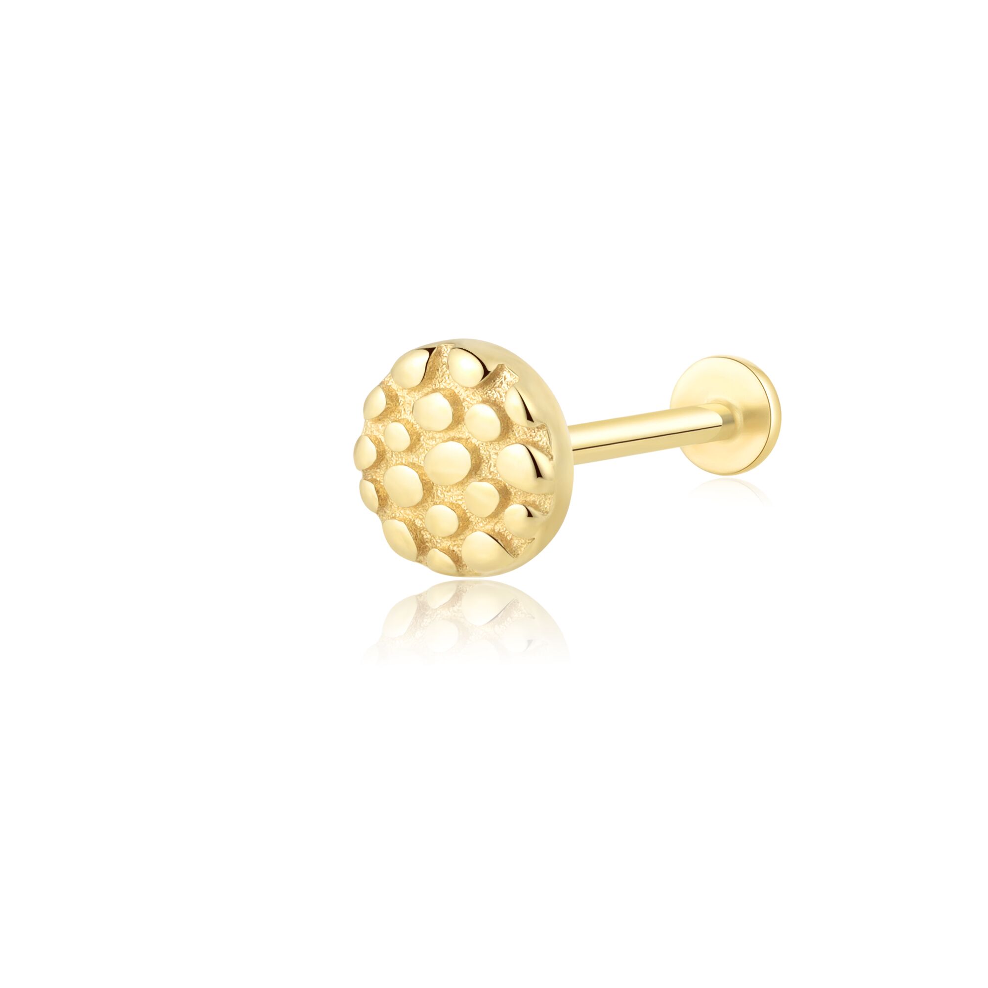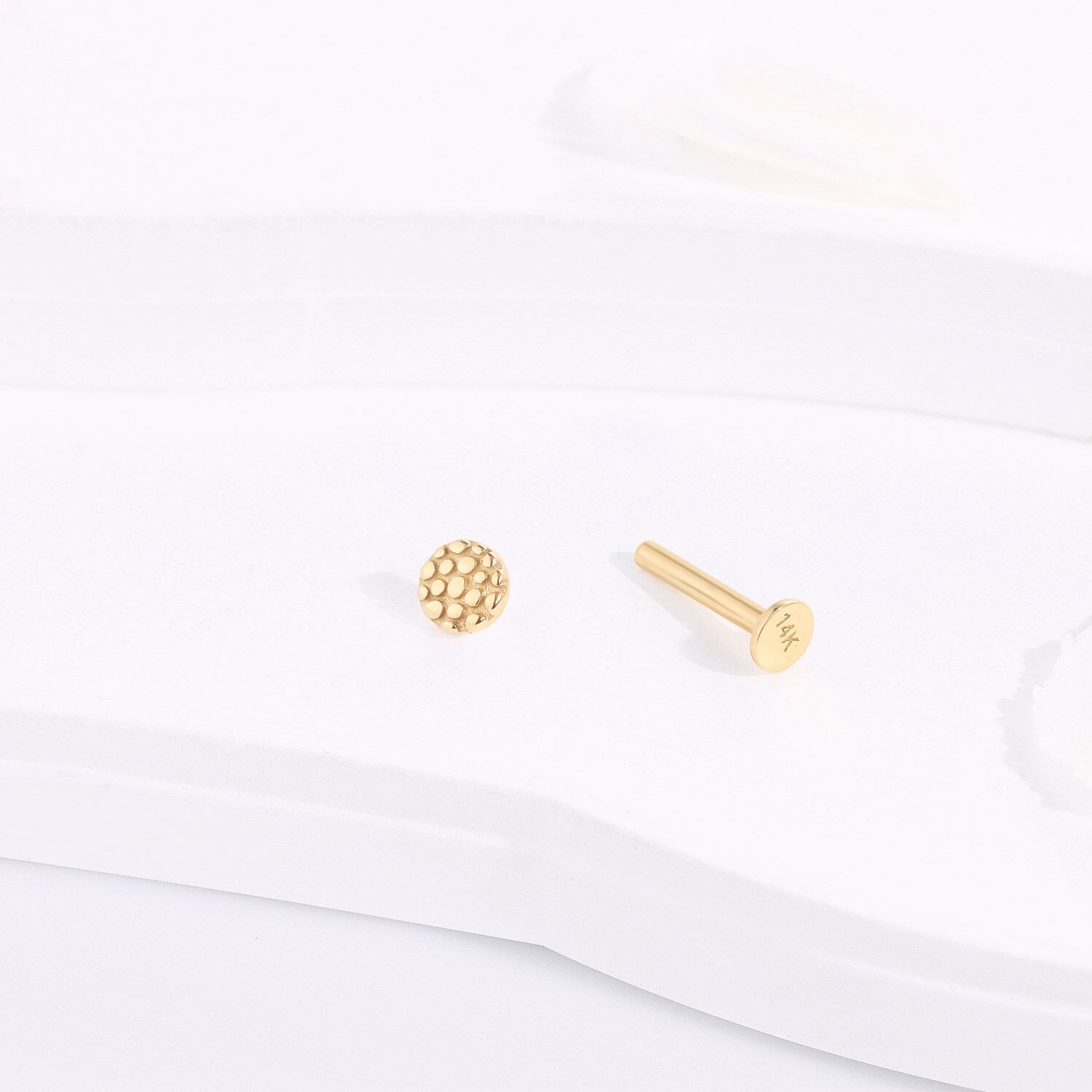 GV215G brings a touch of artisanal texture to 14K gold piercing jewelry. Its unique, internally threaded design in solid gold and stainless steel offers a tactile and visual experience that’s as unique as you are.
